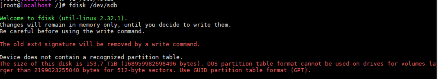 [root@localhost /]# mkfs.ext4 /dev/sdb