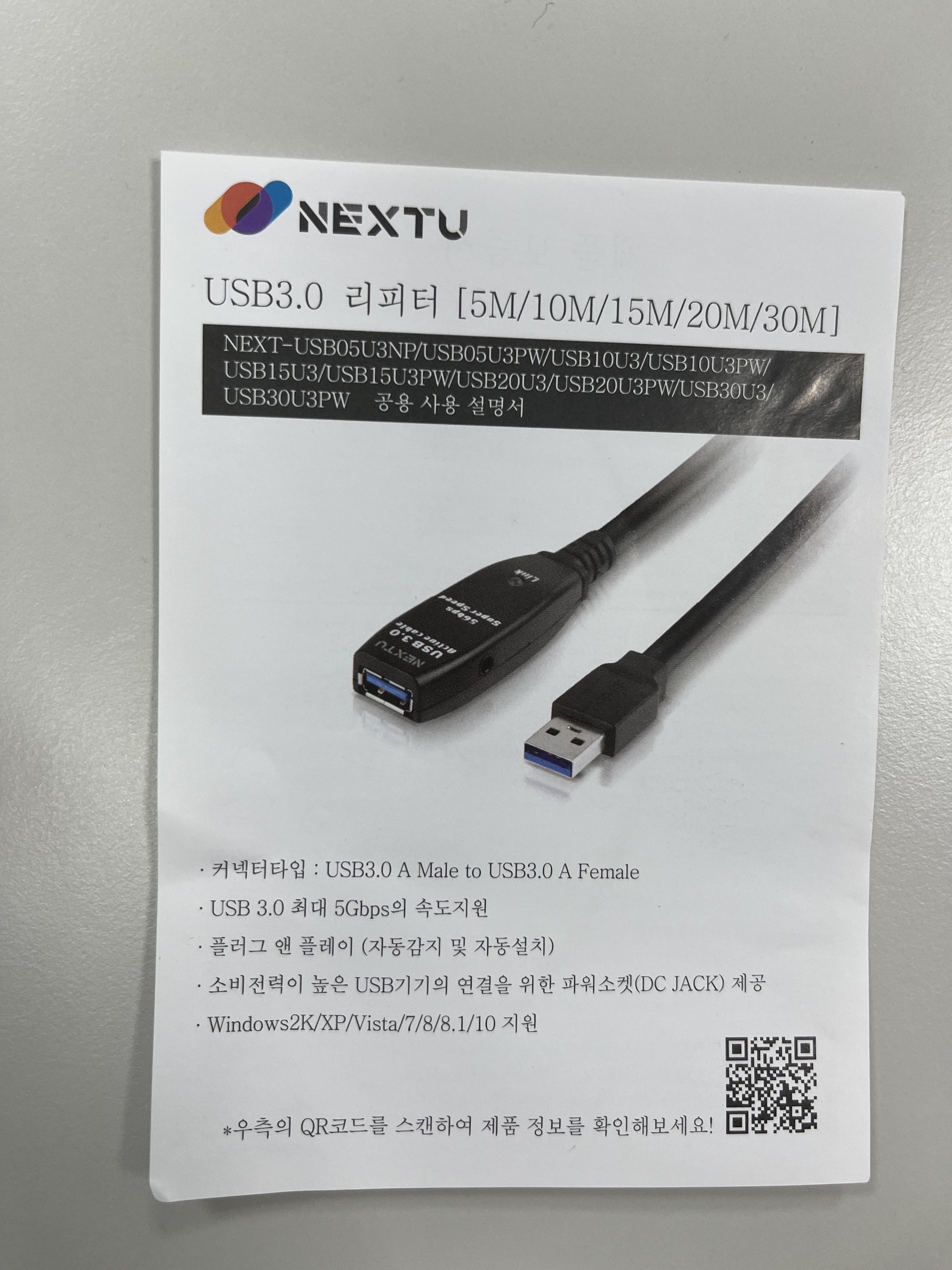 카메라가 인식이 안된다. 케이블 길이가 길어질수록 데이터 전송률이 떨어져서 안된다. 이럴 경우 리피터라는 케이블을 사용해야 한다. 처음부터 리피터를 쓸껄 ㅠ.ㅠ
