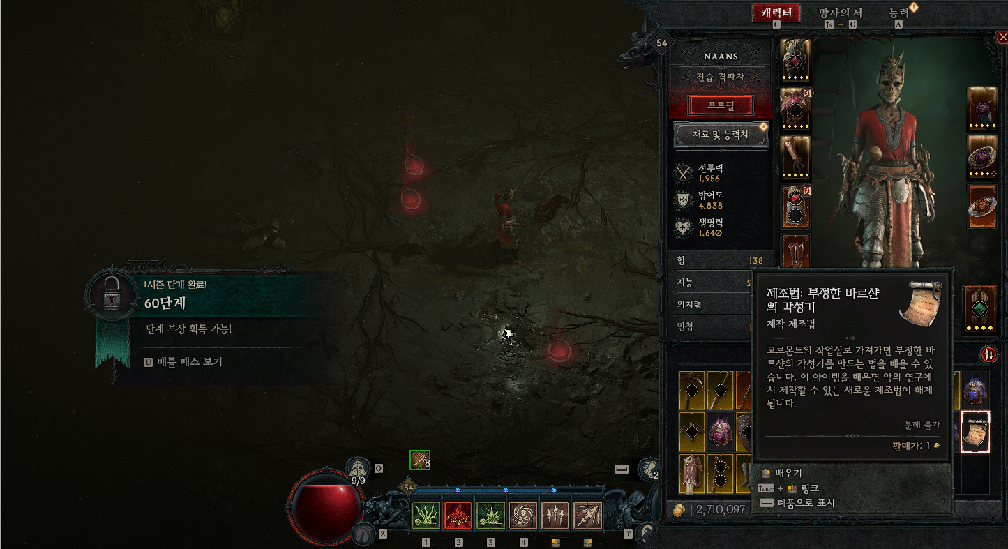 디아블로4 부정한 바르샨의 각성기 배우는 방법