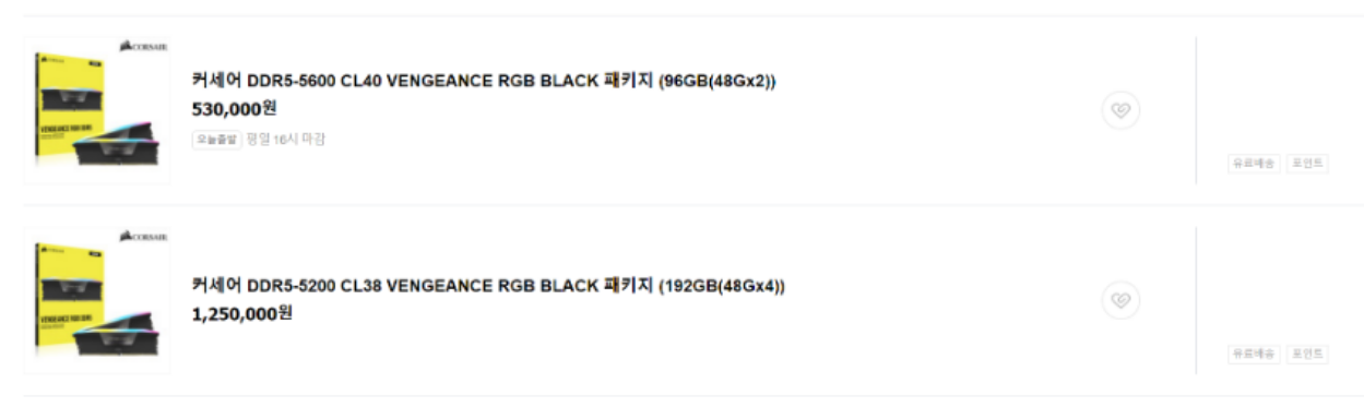 커세어 총판도 역시나 비싸다.(왜 삼성이나 하이닉스는 아직 없지..? 생산을 안하나..?)