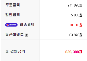 관세까지 해서 총 84만원들여서 구매를 했다.