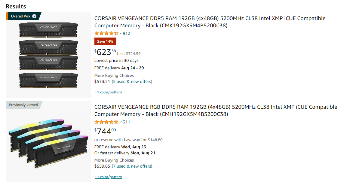 다 24GBx2 를 48GB로 해서 팔고 있다. 가격도 또한 많이 비싸다.