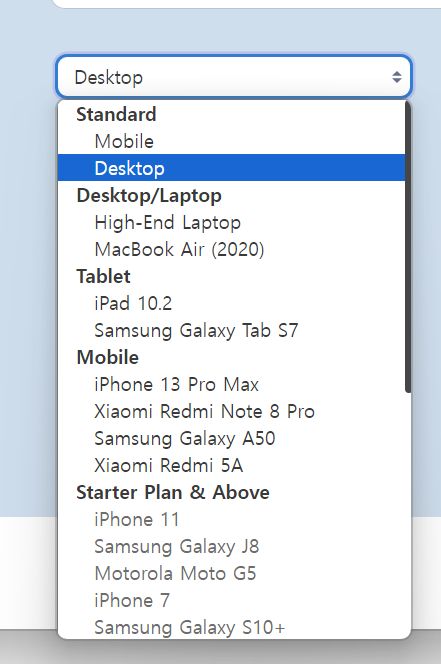 모바일 태블릿 맥 등 다양한 환경에서 접속 테스트를 할수 있다