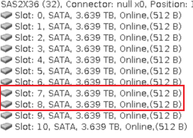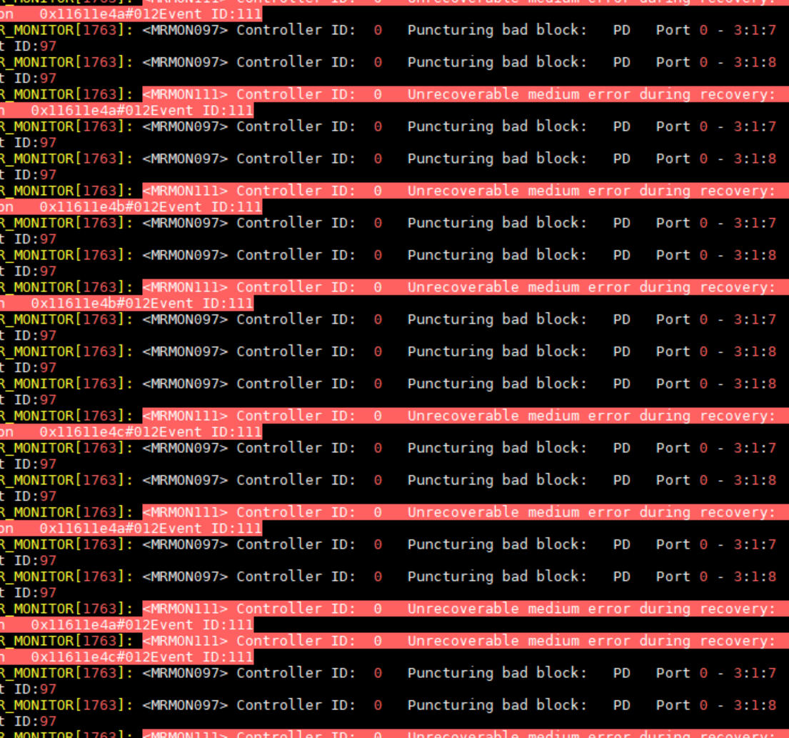 뒤에 7,8 번갈아 보이는 숫자가 있는데 이게 문제가 생길 의심 가는 하드 이다.(레이드 카드 마다 증상 오류 출력이 다르다.)
