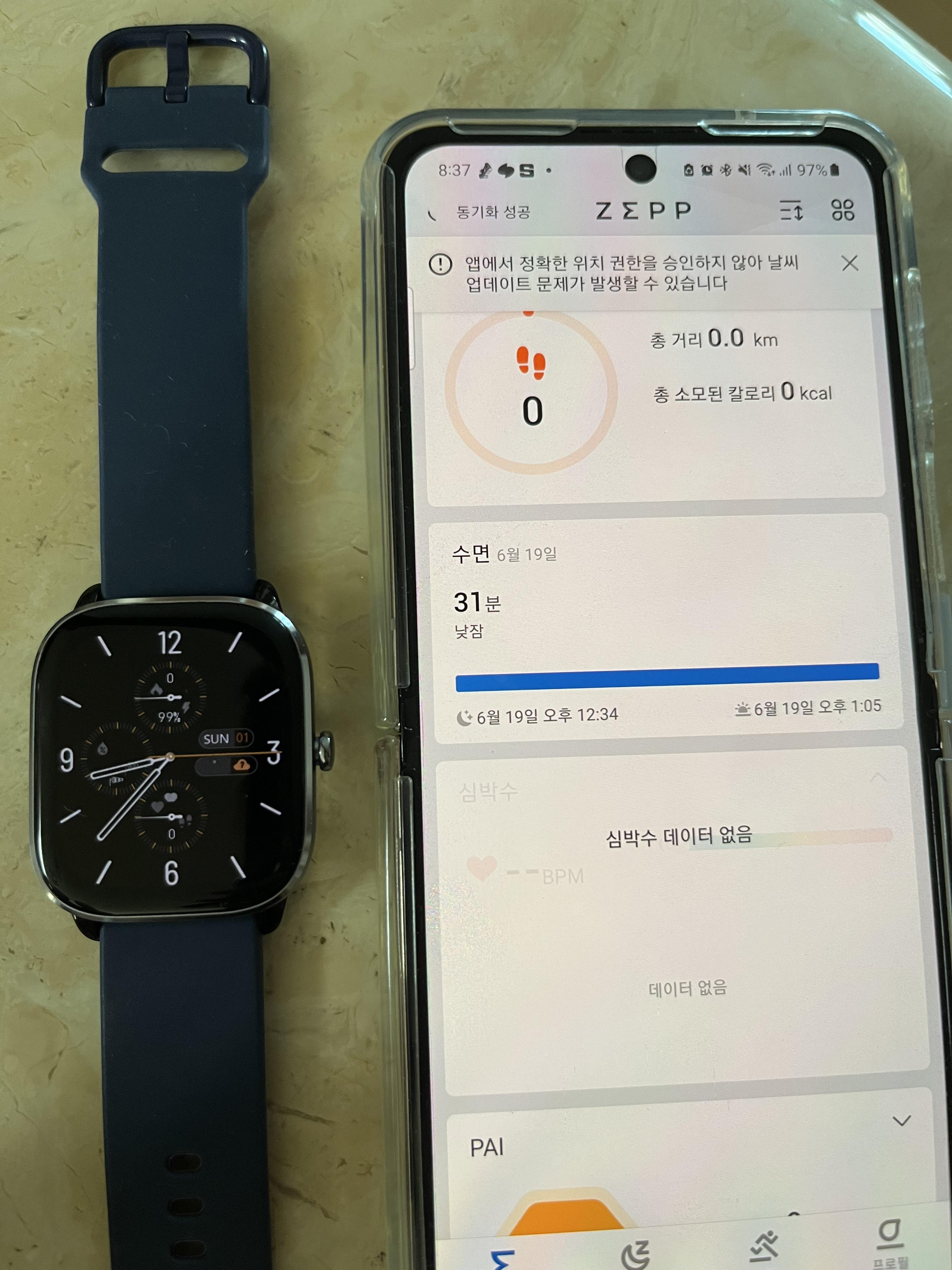 이럴때는 Amazfit GTS4 Mini 설정앱인 zepp 어플을 구동을 해서 동기화를 해주면