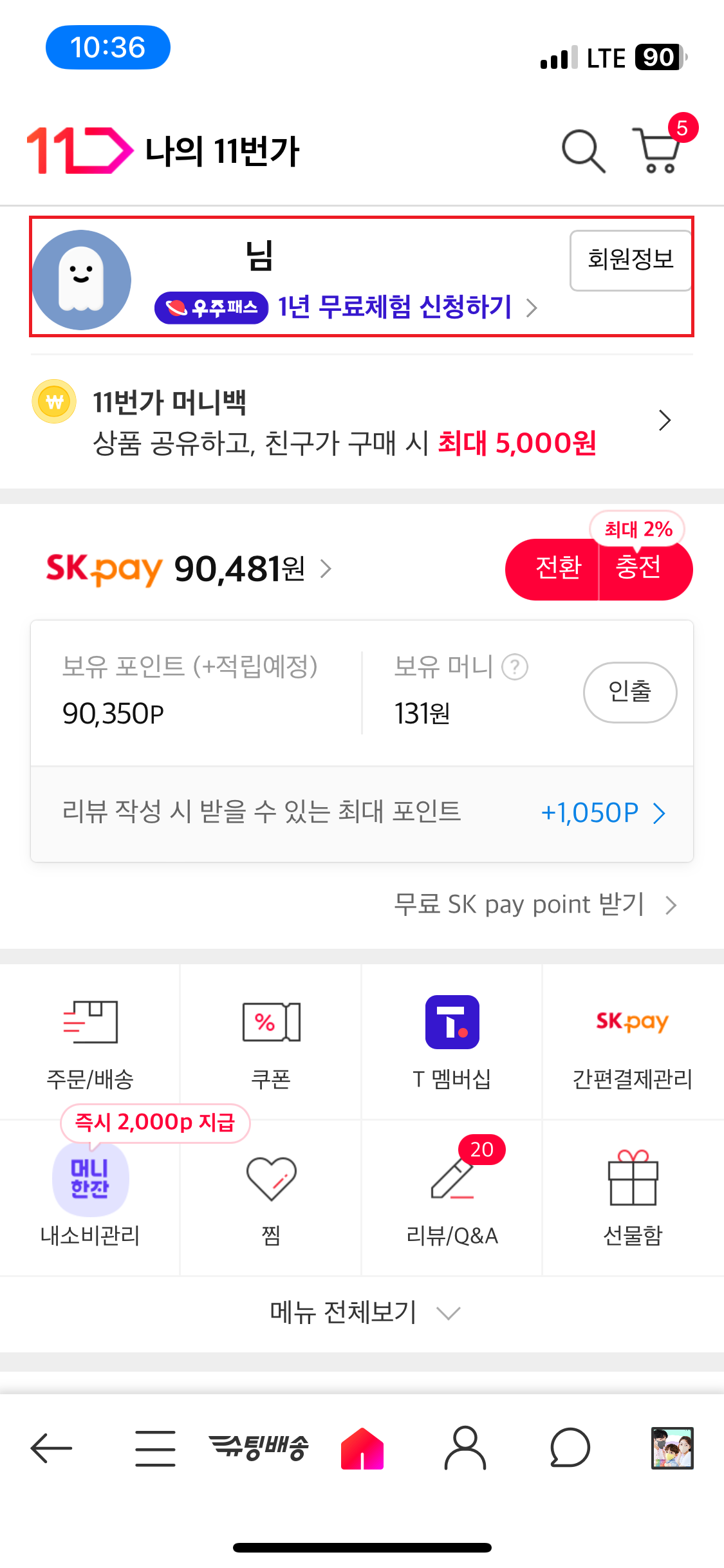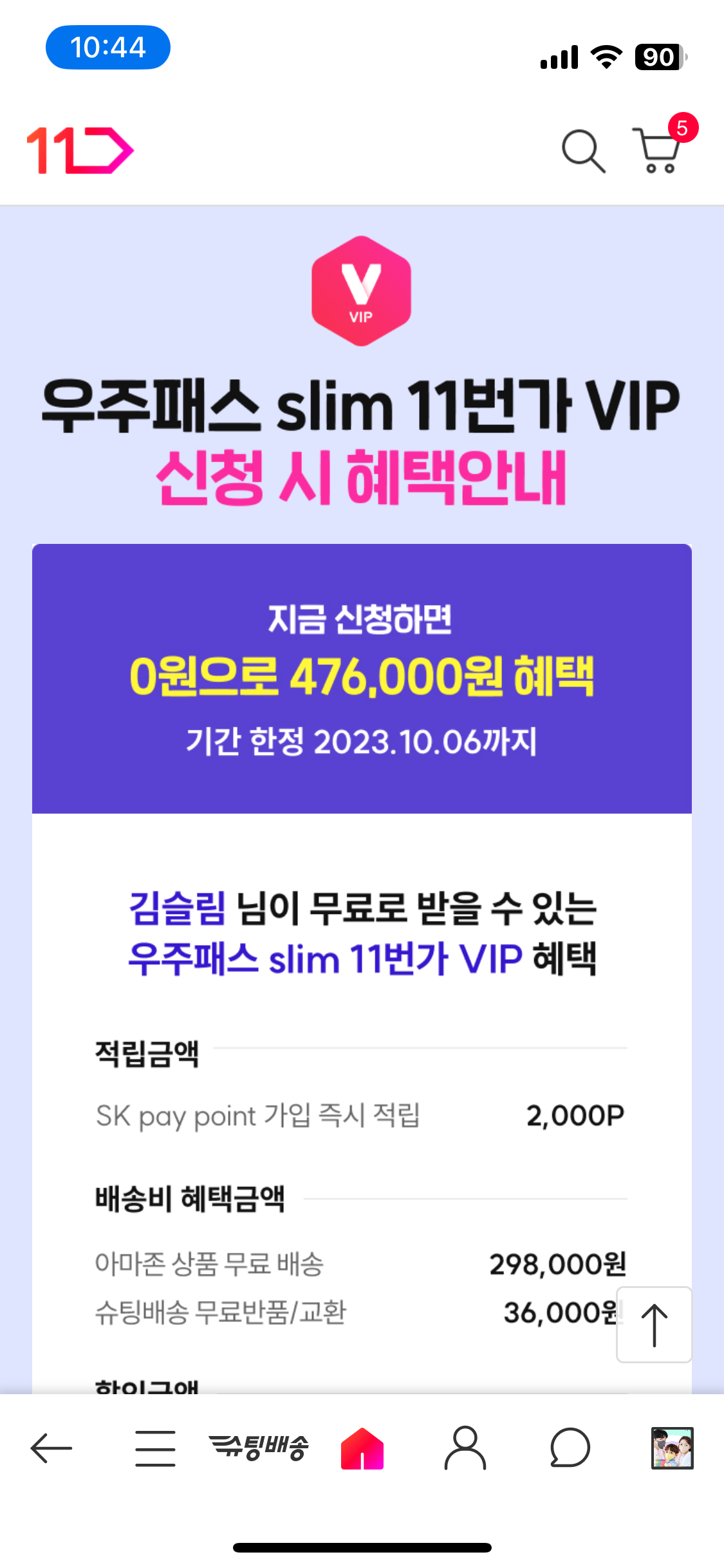 우주패스 slim 11번가 VIP 1년 무료체험 이벤트중이다.