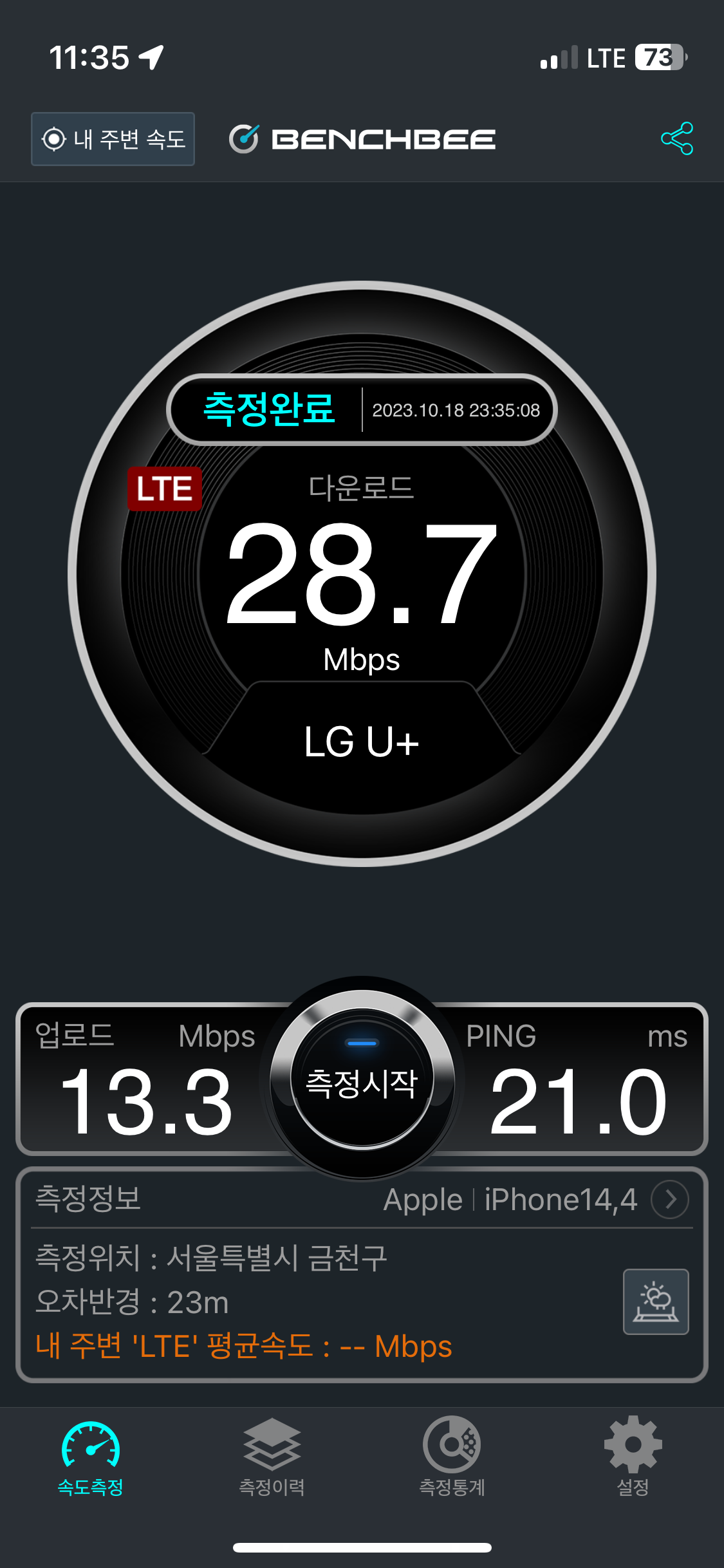 속도측정도 해보니 정상적으로 잘 된다.(속도는 느리지만.)