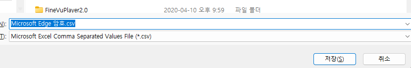 csv 파일로 저장이 된다. 이 파일을 열어보면 아이디 암호가 보인다. 누군가 이 파일을 열어보면 내 계정 정보를 다 알 수 있으니 이 파일 관리를 철저히 하자!