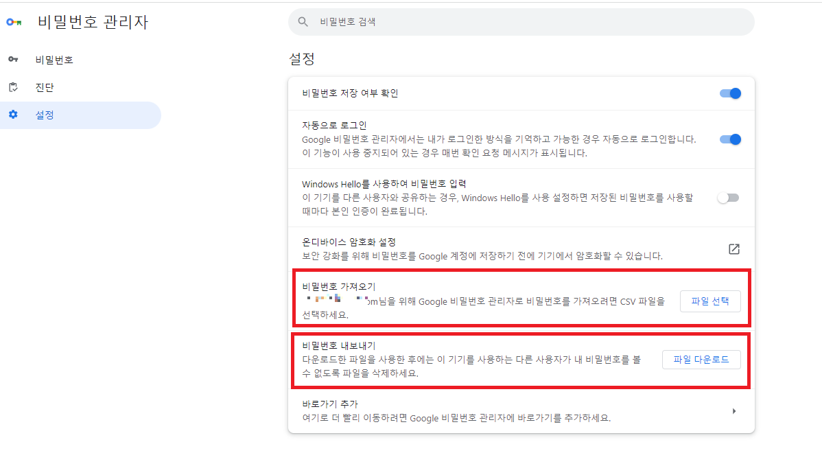 설정 오른쪽 점3개를 누르면 암호 내보내기가 있다 눌러보자