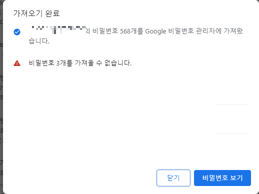 비밀 번호를 정상적으로 가져왔다. 크롬에서 쓰던 암호를 100프로 완벽하게 가져오진 않았지만 그래도 예전에 쓰던 모든 암호를 정상적으로 가져왔다