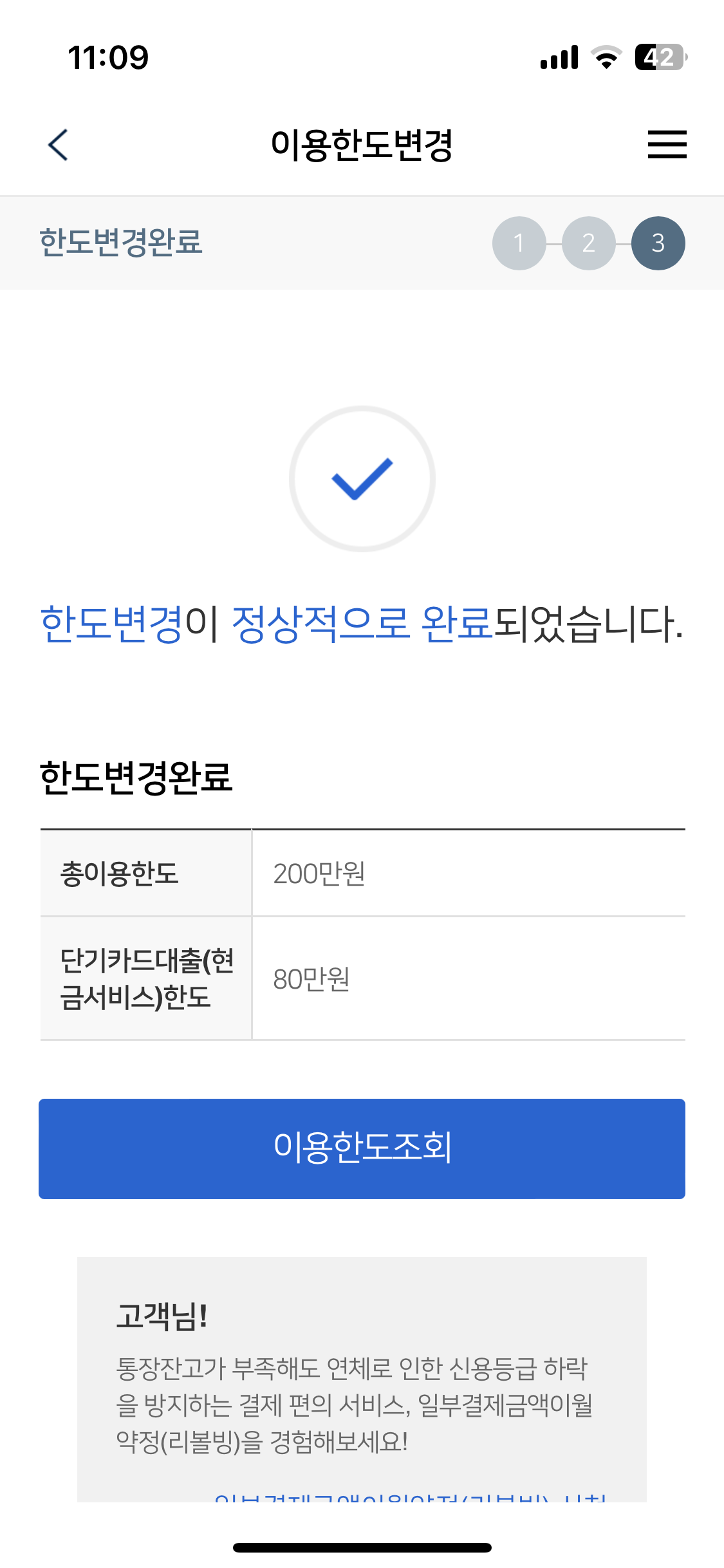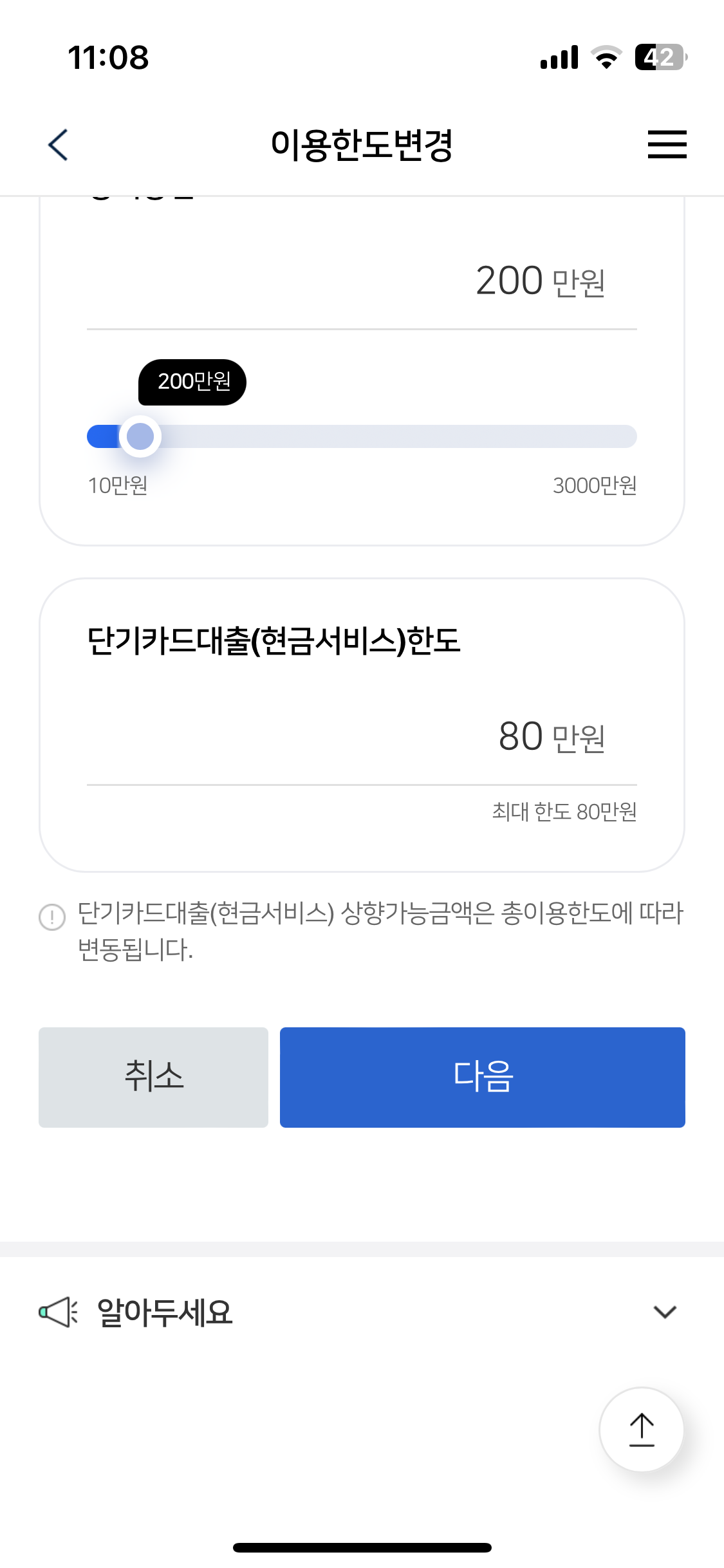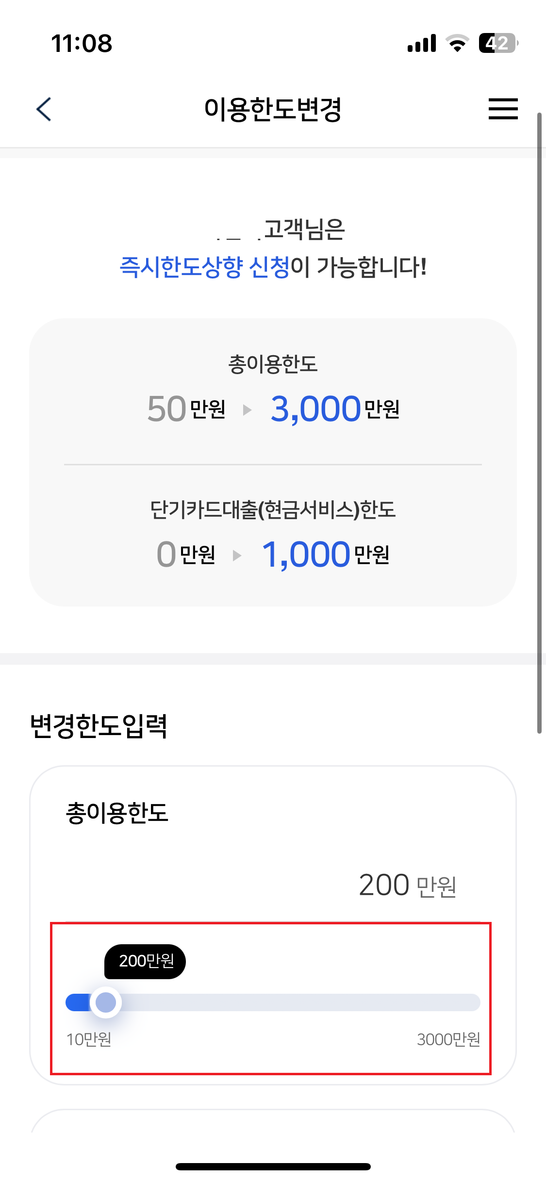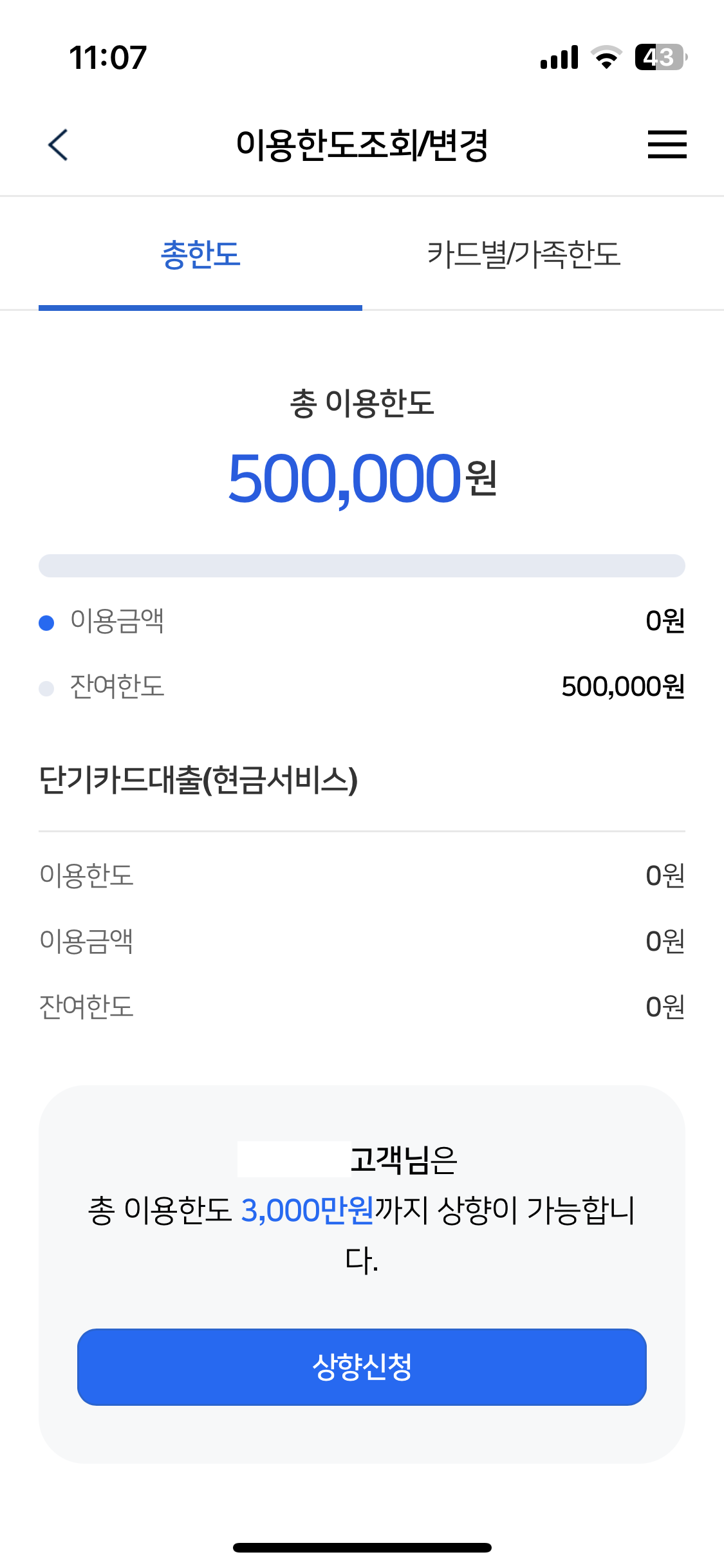 검색에 한도상향을 눌러서 들어가보면