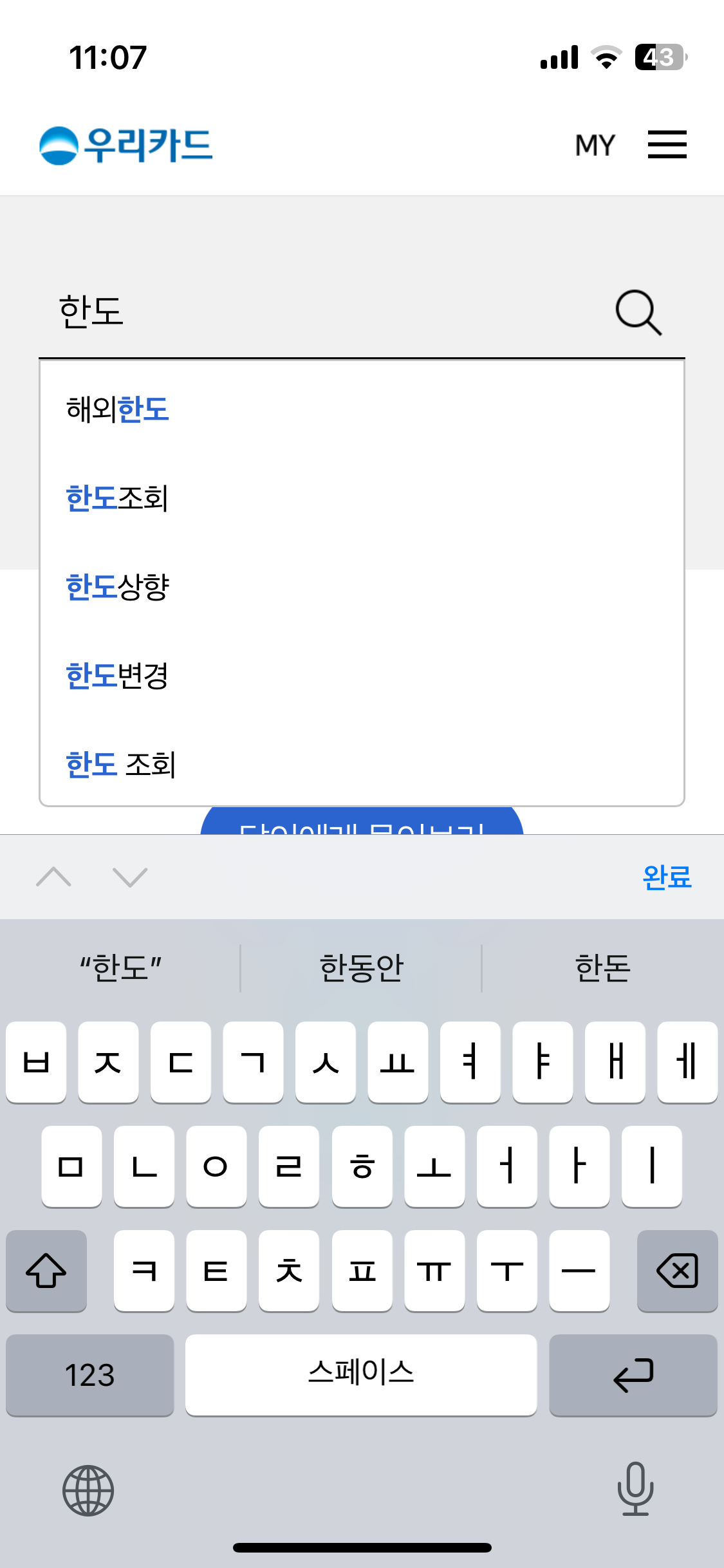 메뉴가 있다 개인모바일-MY-이용한도-이용한도 조회/변경