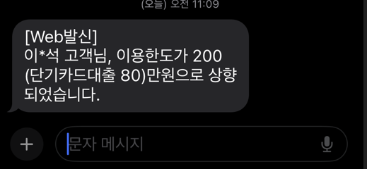 문자도 한도가 변경되었다고 나온다.