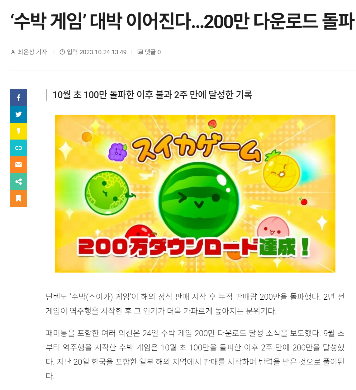 2021년 수박게임 이라는 게임이 나왔었는데 그때는 뭐.. 그저그런 게임이였지만 지금 역주행으로 선풍적인 인기를 끌고 있다.