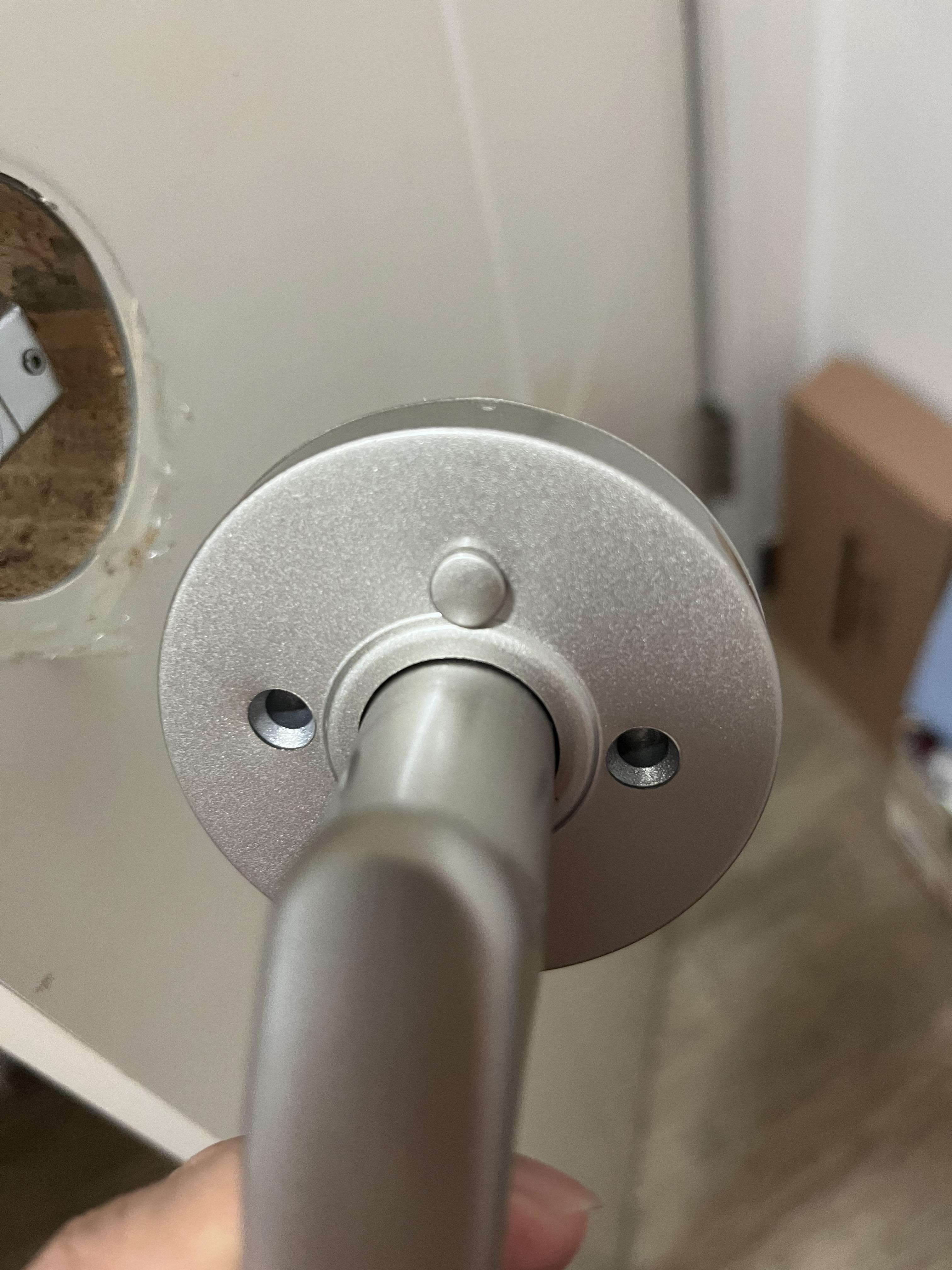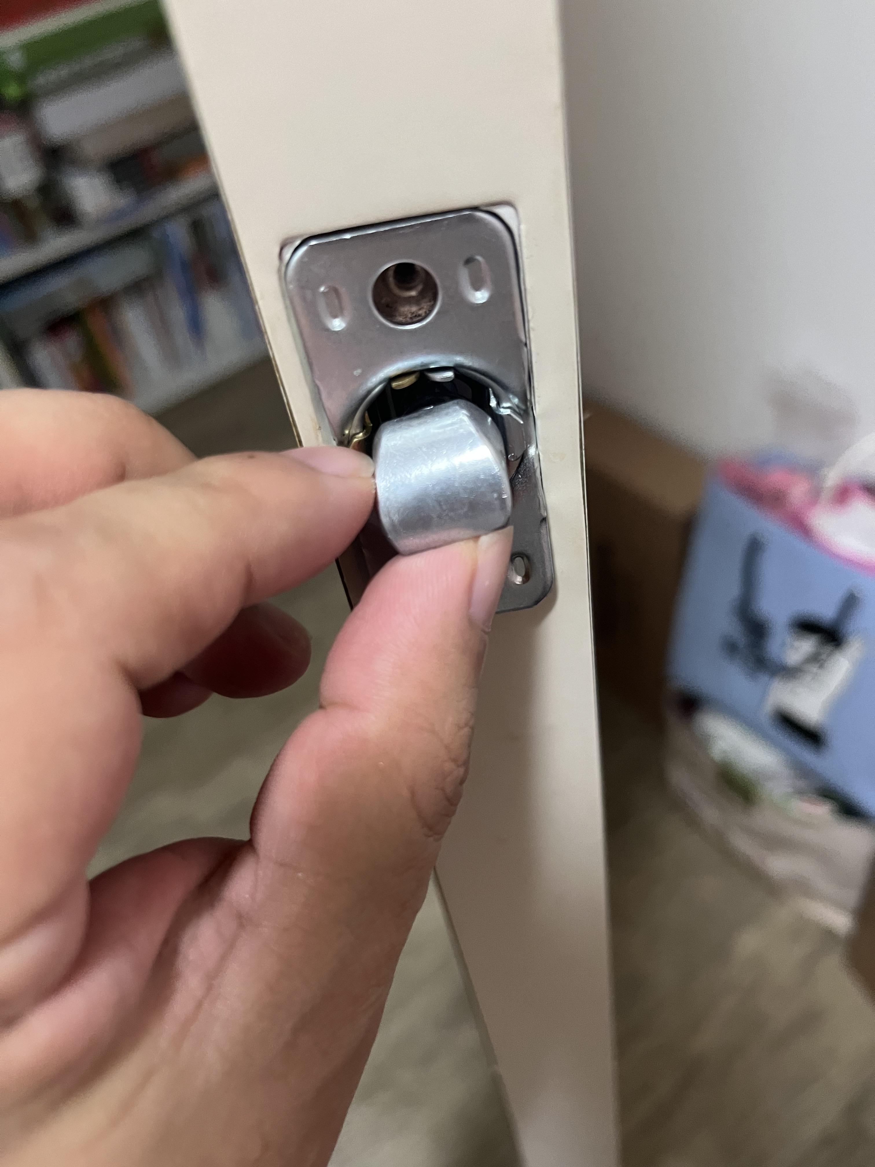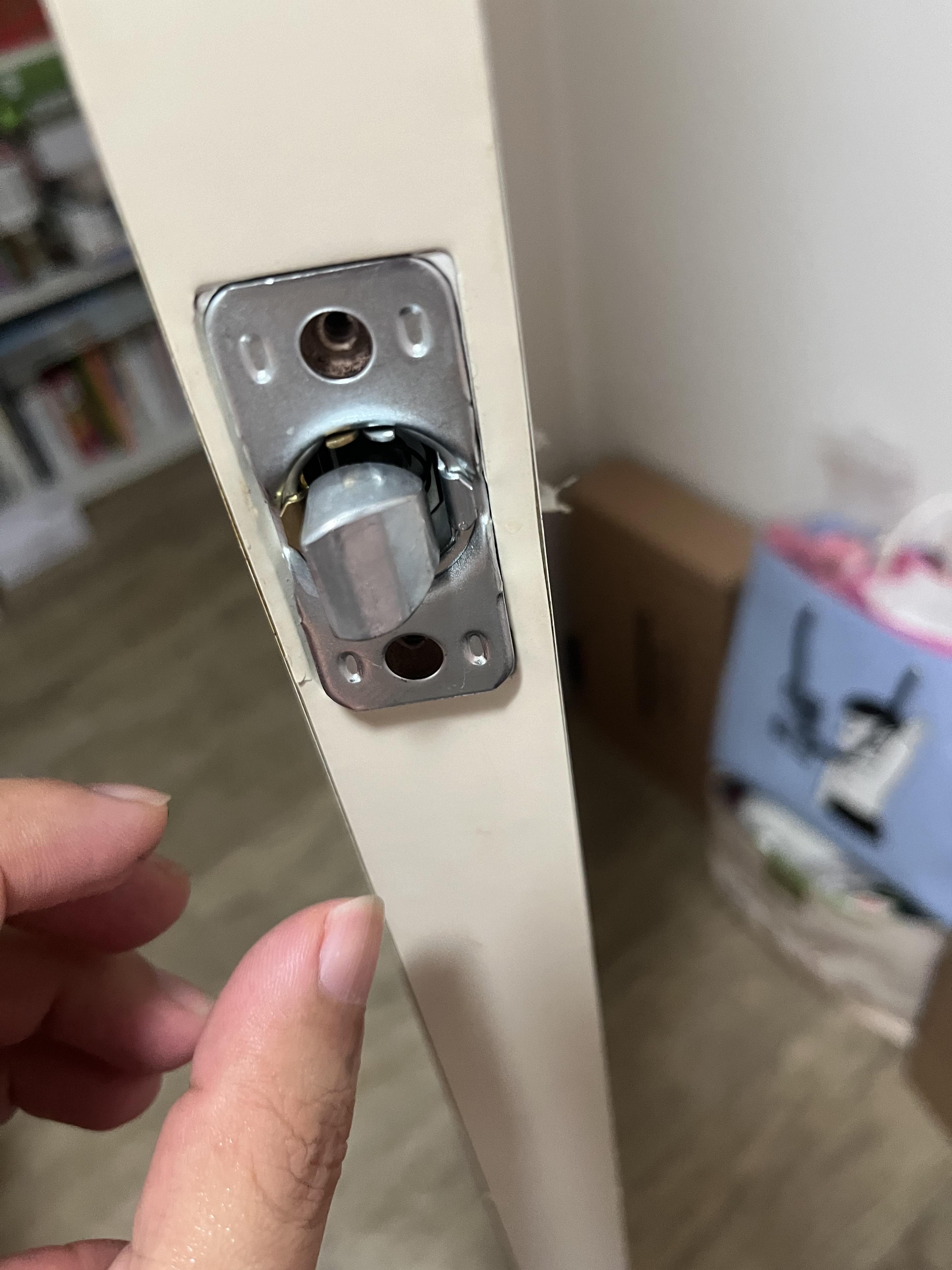 이렇게 락 버튼이 있는곳이 문 안쪽이다. 없는쪽은 반대쪽으로 연결을 해주고 나사를 체결해주자