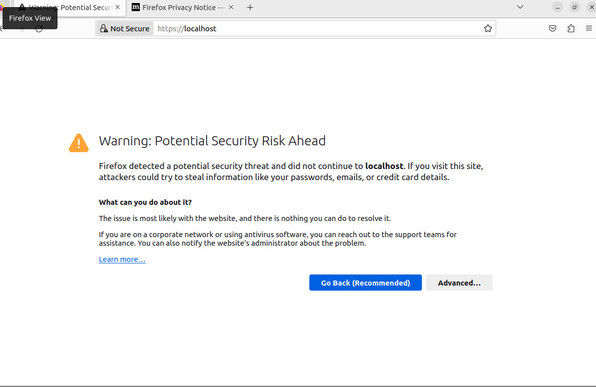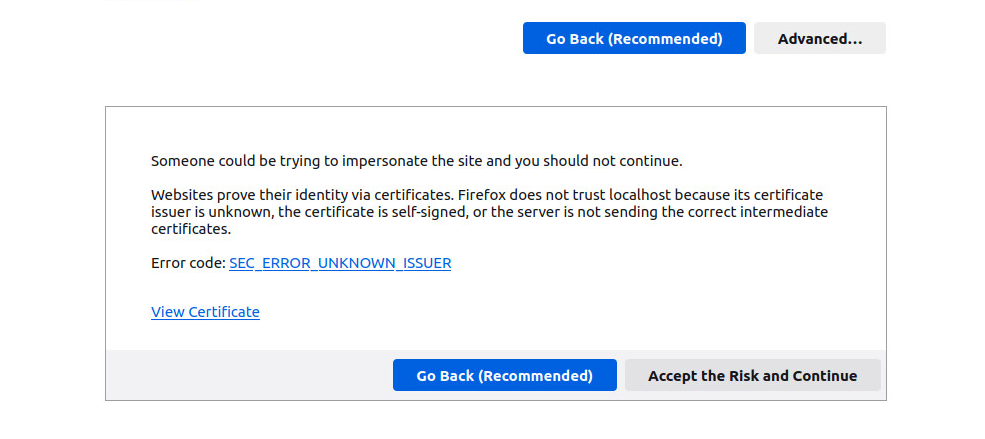 ssl 인증 에러 때문에 이렇게 뜨는데 advanced 로 들어가서