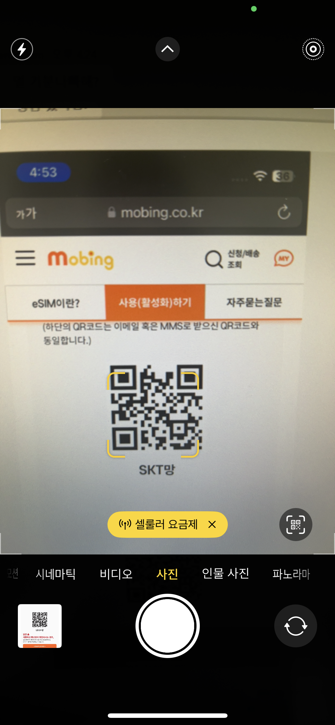 이제 ESIM 을 다운 받아야 하는데 통신사 마다 QR 코드가 다르다.