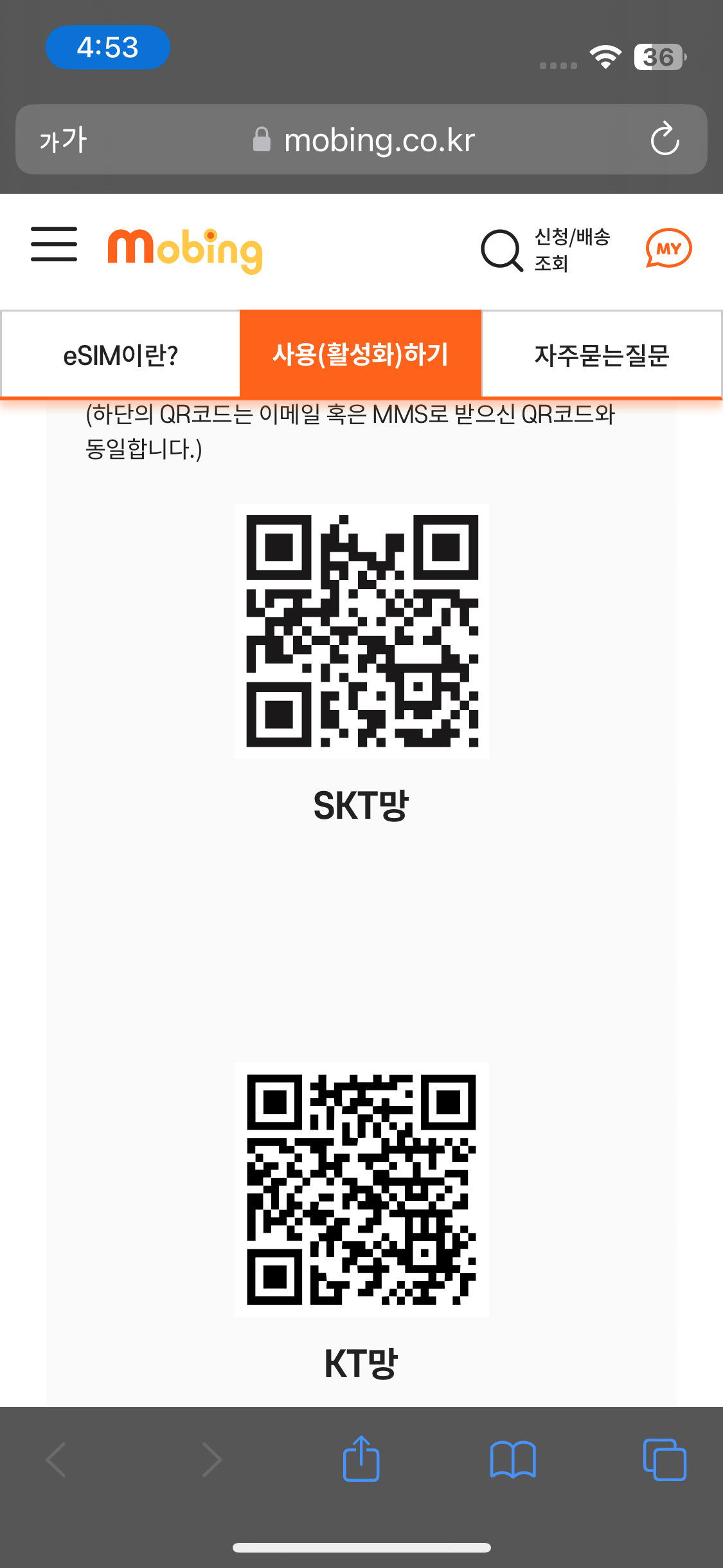 이제 ESIM 을 다운 받아야 하는데 통신사 마다 QR 코드가 다르다.