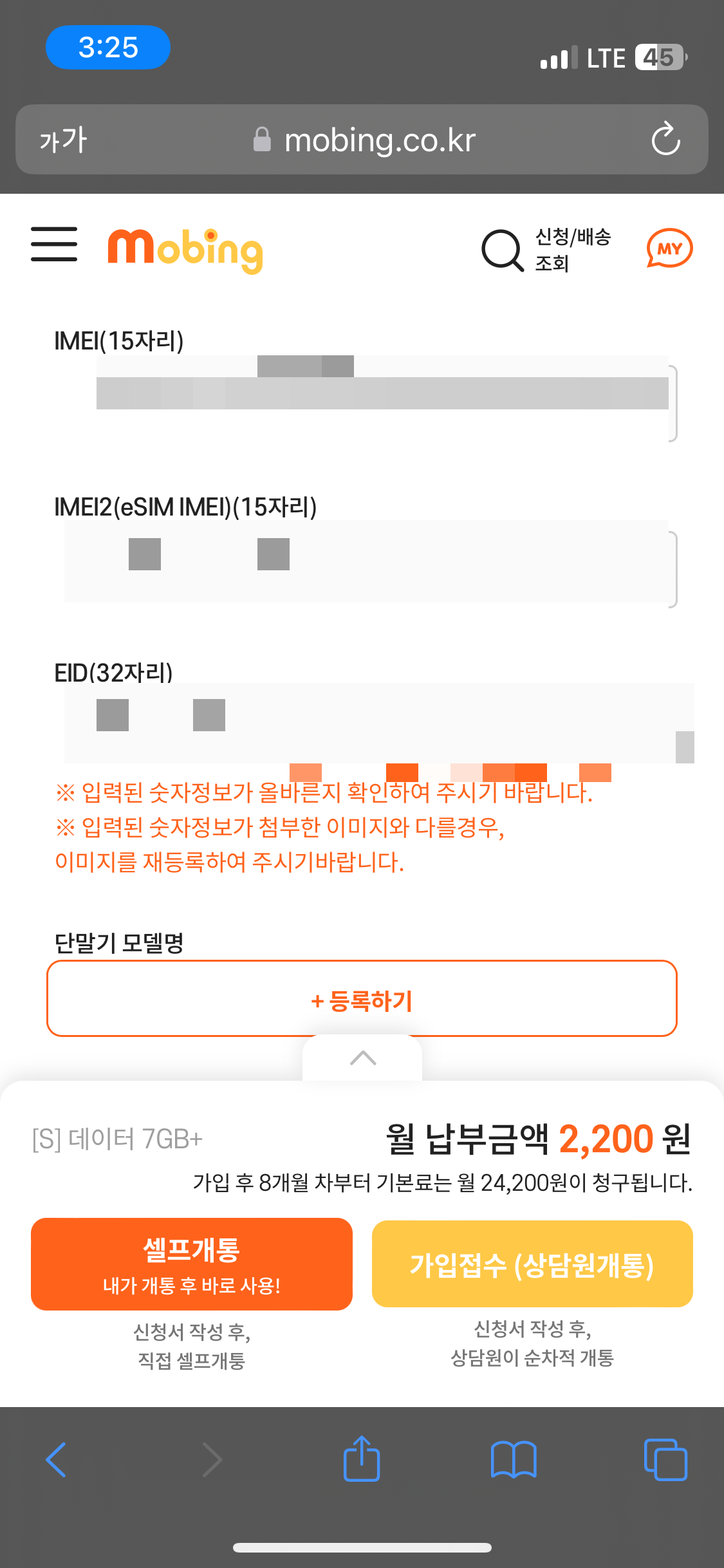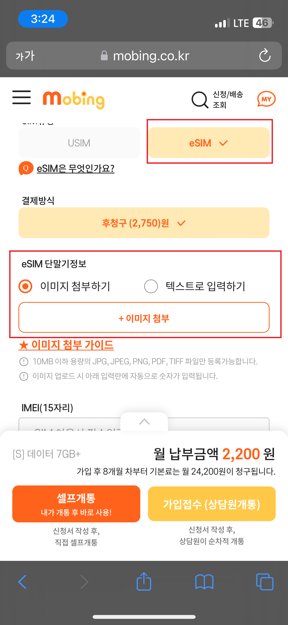 모빙에서 괜찮은 요금제를 찾았다. 그리고 ESIM 도 지원한다. 예전에는 IMEI 값이 EID 값을 입력을 해야 했는데