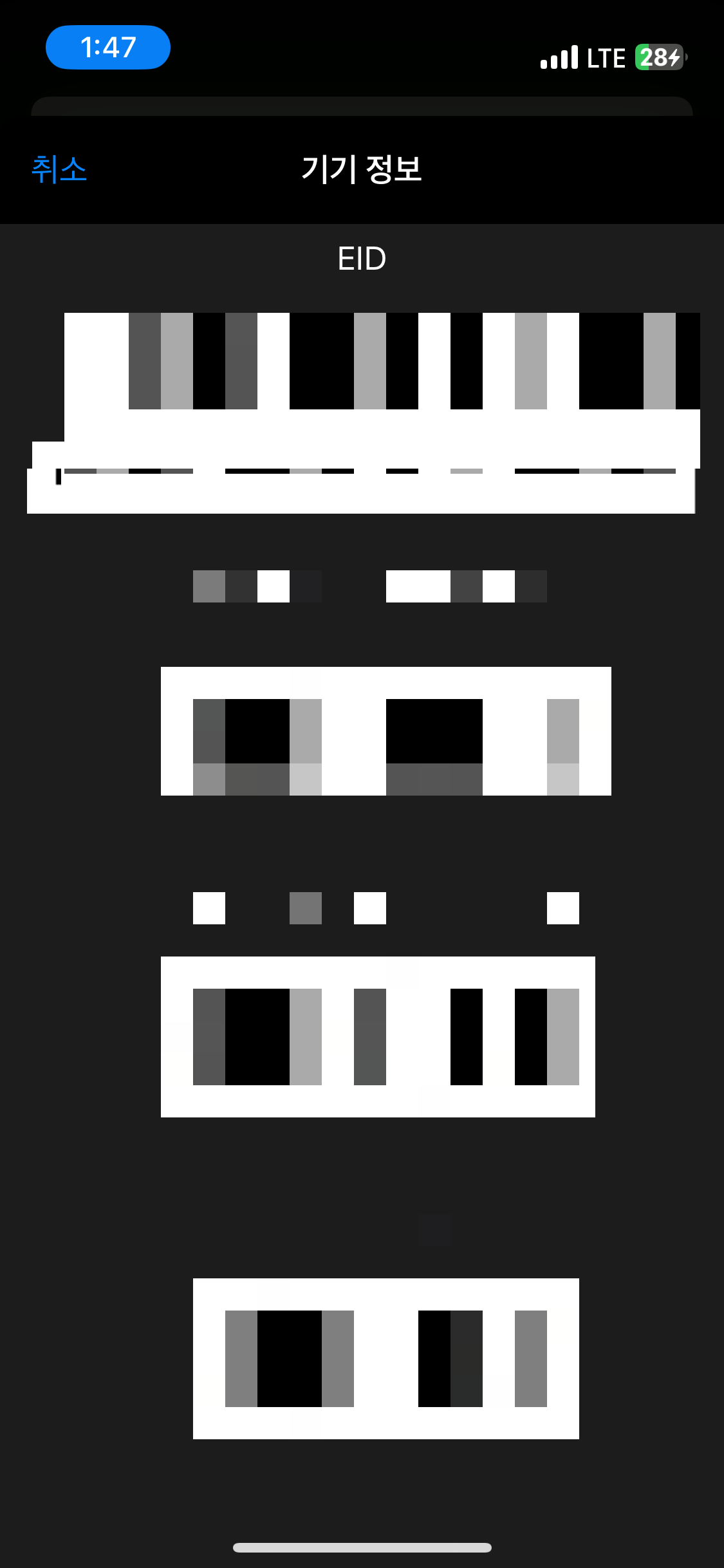 오류인지 모르겠지만 인스모바일로 아직도 나온다 모빙 SKT 로 넘어갔는데... 뭐.. LG 에서 SKT 로 통신사 넘어간걸로 뜬거 같고 전화 문자 잘 되니깐 잘 된거겠지~ 여튼 이상 ESIM 번이 후기였다~