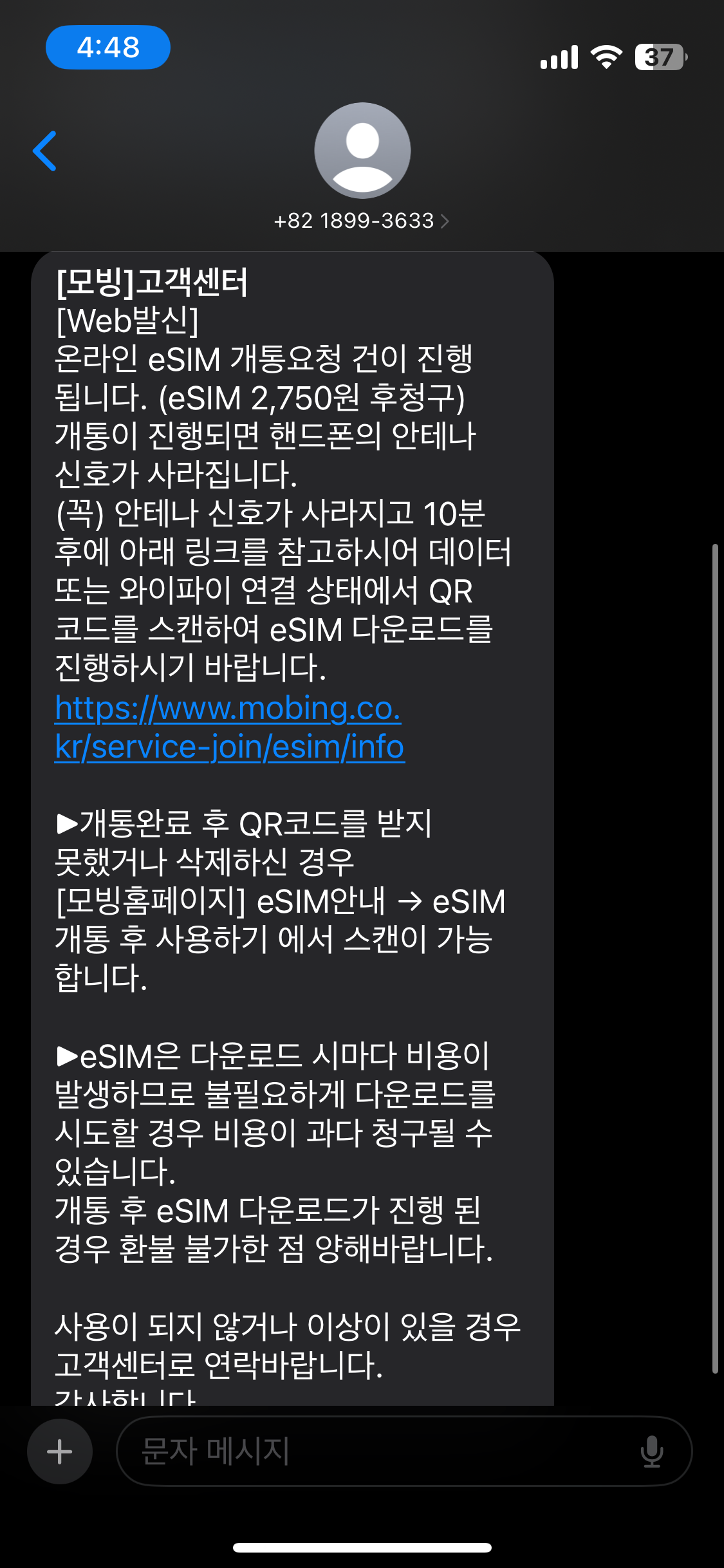 사전동의 문자가 왔다. 동의를 하니 개통이 진행 된다.