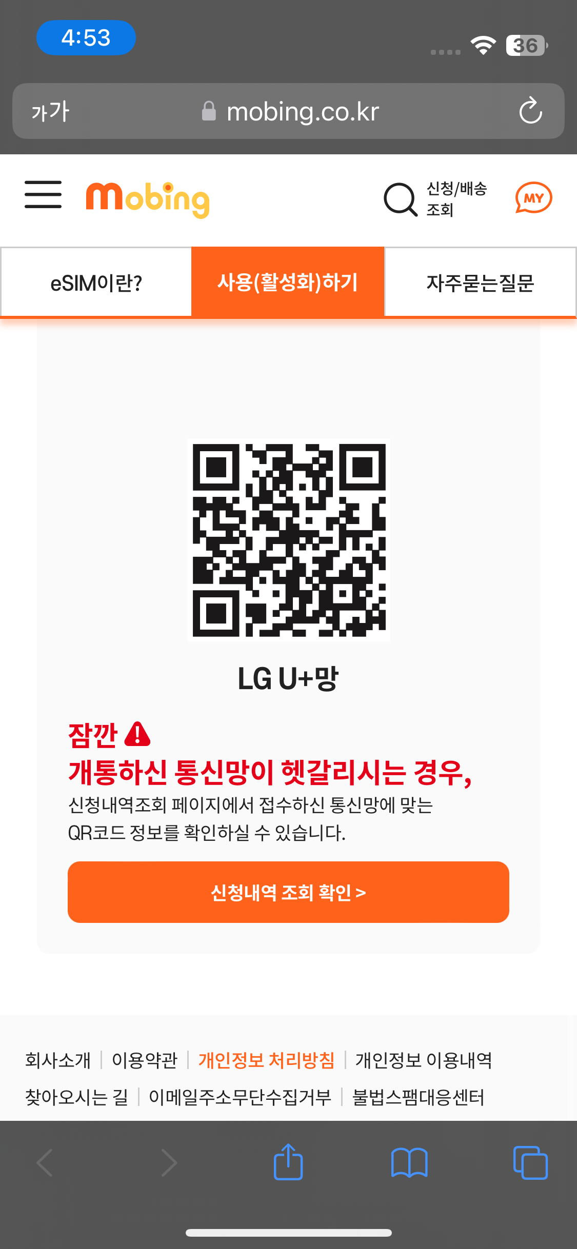 혹시나 해서 모빙 고객센터.. 약 10분 정도 대기해서 전화를 해봤는데 전산이 늦어서 그럴수 있다고 한다. 기다리면 사전동의 문자가 가고 동의 하면 바로 개통이 진행 된다고 한다.
