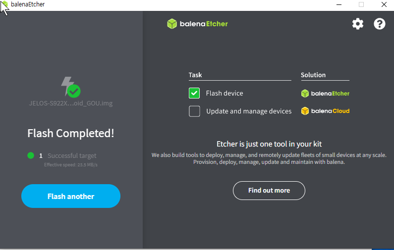 파일을 열면 이렇게 되어 있다. 자 이제 balenaetcher 를 구동을 하고