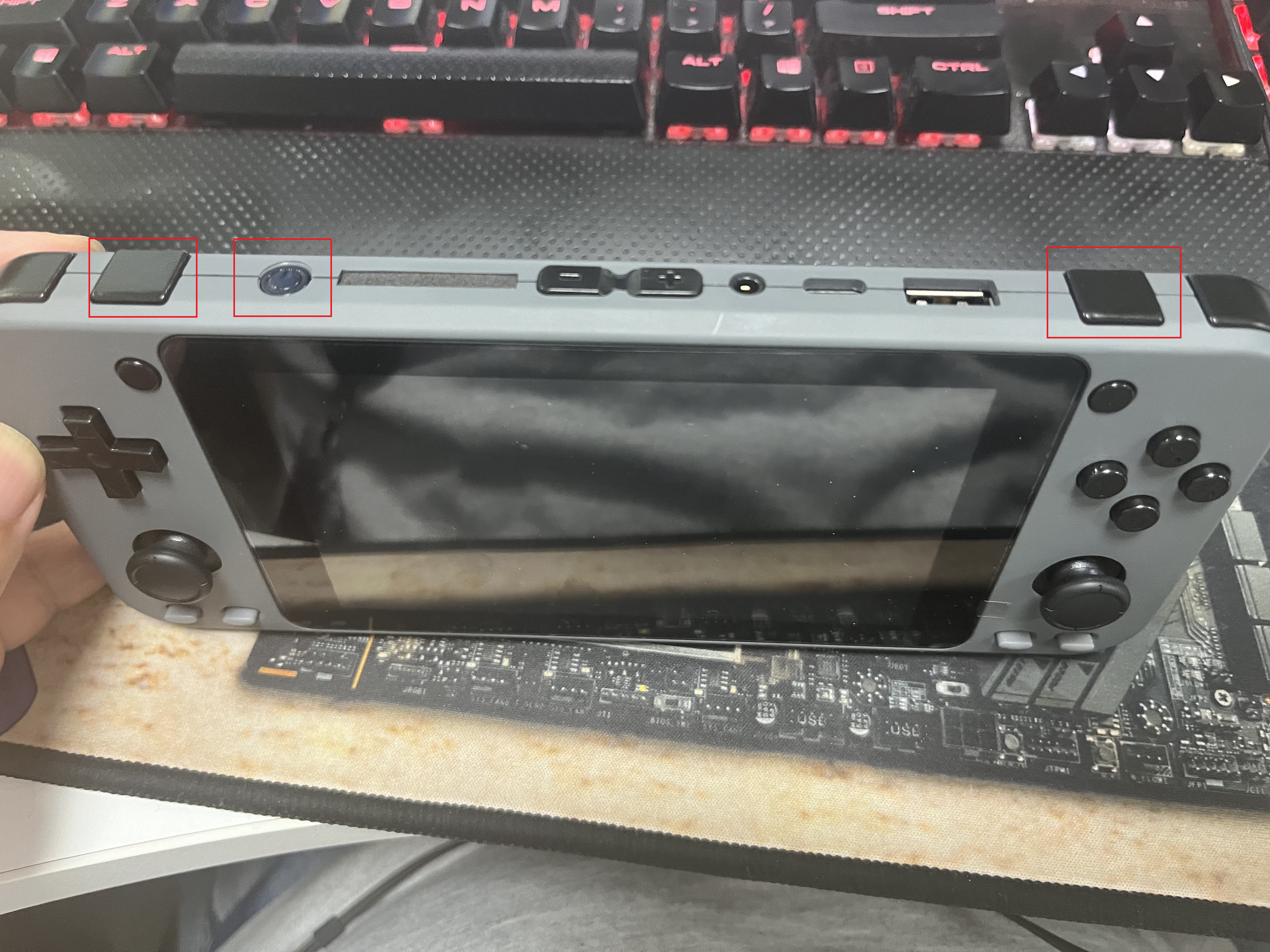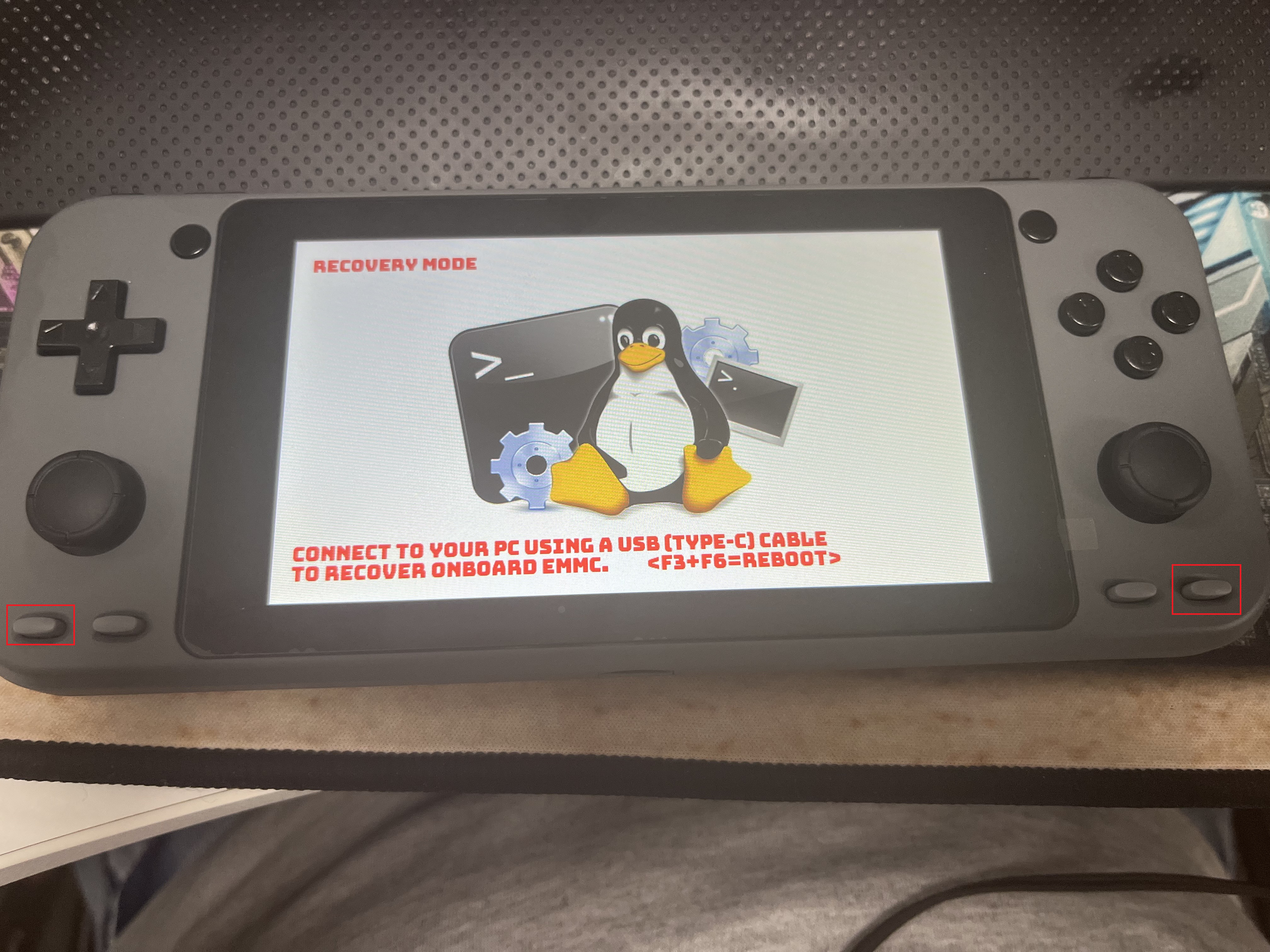 빨깐색 박스 왼쪽 오른쪽 버튼을 누른상태에서 전원 버튼을 눌러보자