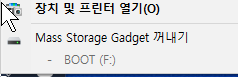 PC에 장치관리에 보면 Mass Storage 라고 장치가 연결된걸 확인 할 수 있다.