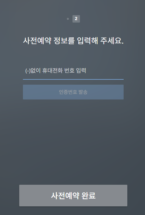 전화 번호와 인증을 입력을 하면 사전 예약이 완료 된다.