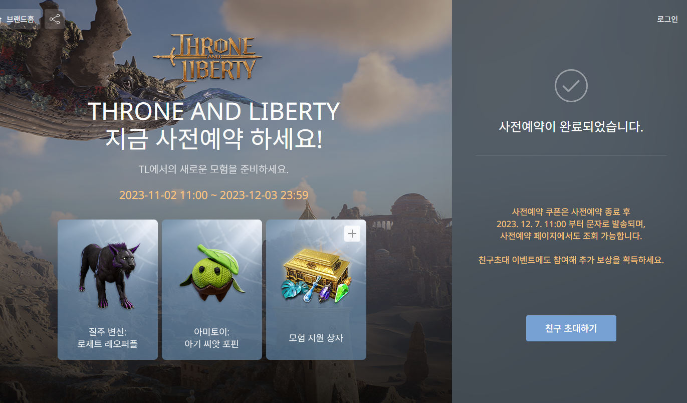 TL 사전예약하고 친구를 초대하여 특별한 선물을 받아가세요!