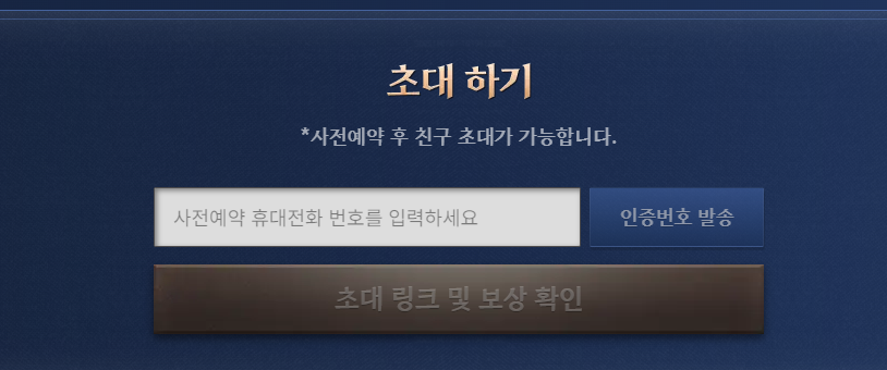 초대는 휴대폰 번호로 초대가 이루워 지고 친구가 사전예약 링크로 사전 예약을 진행 하면