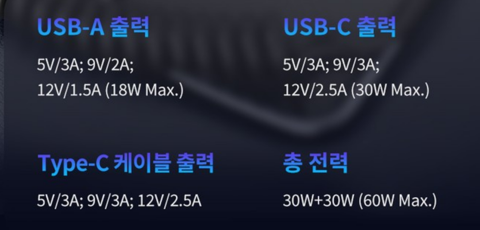 뭐 당연하지만 총 출력이 60W 이고 위와 같이 나눠서 사용이 된다.