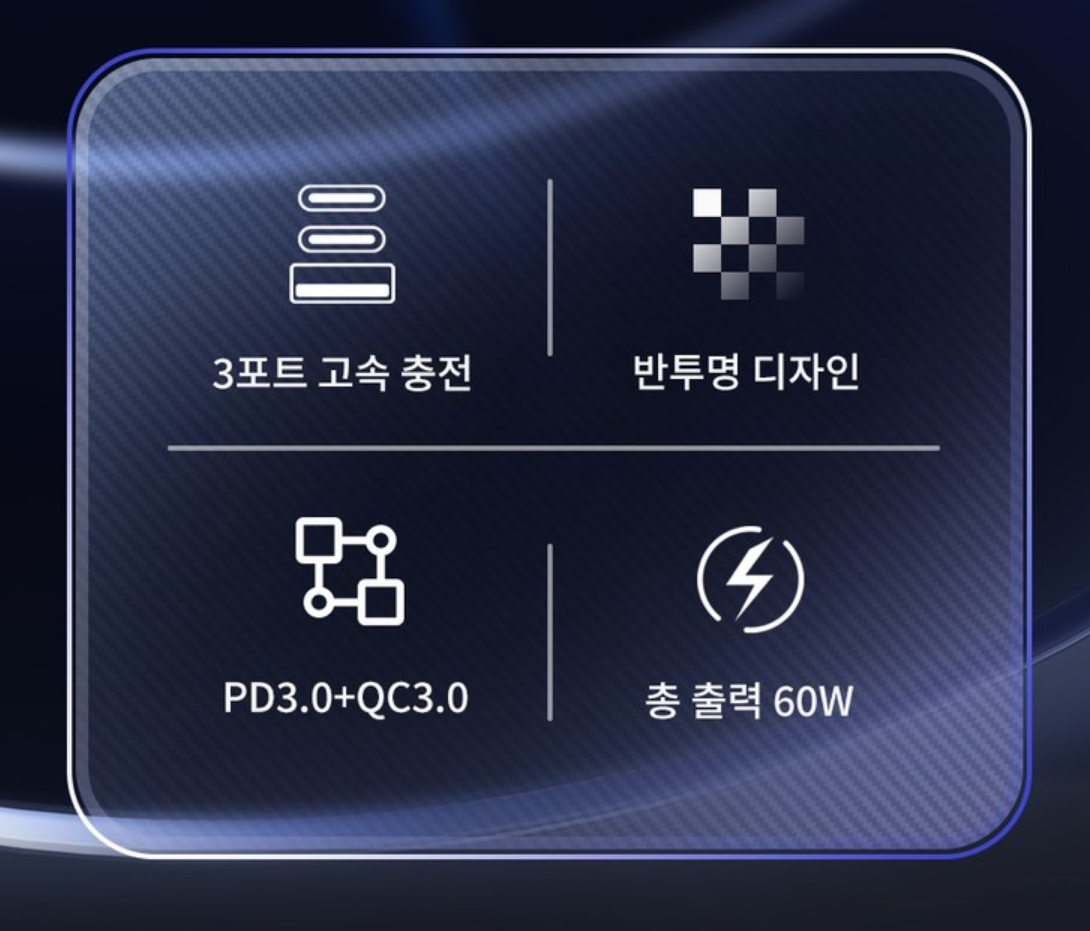 3포트 고속 충전제품이라고 한다. 알리제품이긴 한데 차량용 충전기가 제 성능이 안나와서 구매 했다.