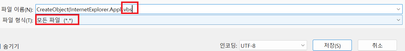 파일이름 확장자를 vbs 로 변경하고 저장을 눌러주자
