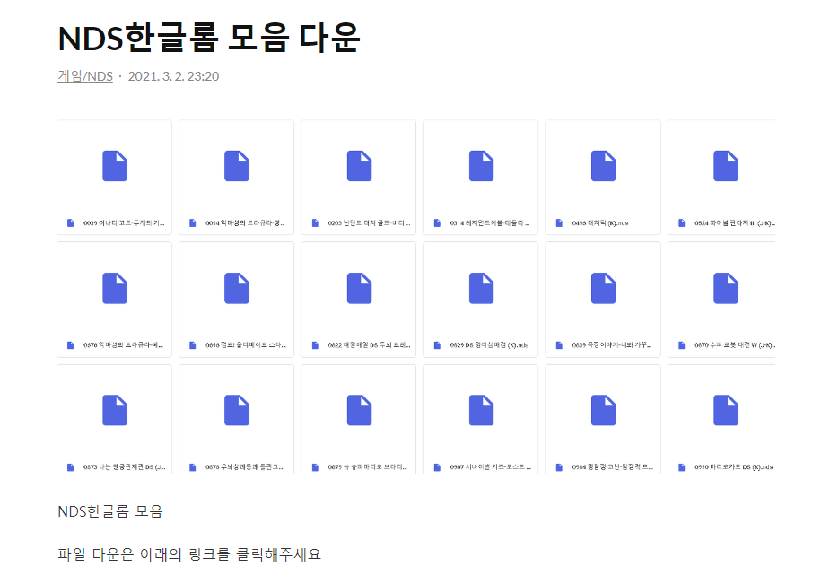 NDS 한글룸 모음이다. 몇가지 없는 게임도 있지만 거의대부분 있다.