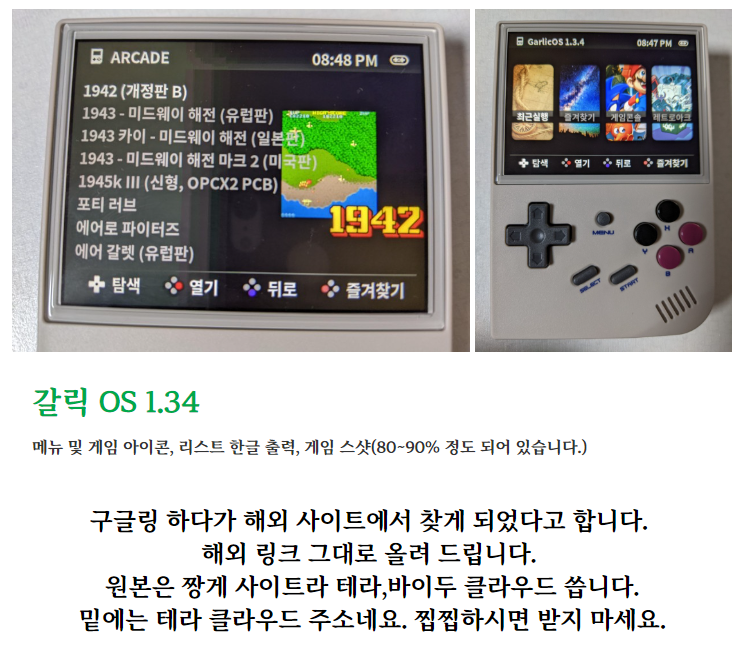 갈릭OS용 RX35xx 64GB, 128GB 테라에서 다운 받을수 있다. 받아보니 64GB 나 128GB 는 용량이 좀더 커서 압축을 풀어서 필요한 게임파일만 넣으면 된다. 프리미엄이 아니면 다운로드 속도제한이 있다. 그래도 뭐 64GB, 128GB 다 받는데 2일정도면 받는다. 아참 계정을 만들어야 다운이 가능하다.