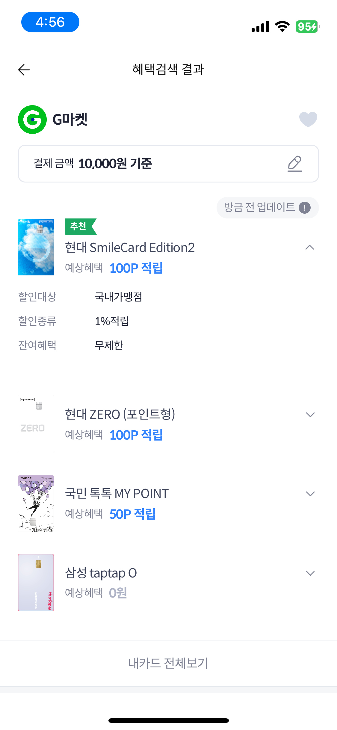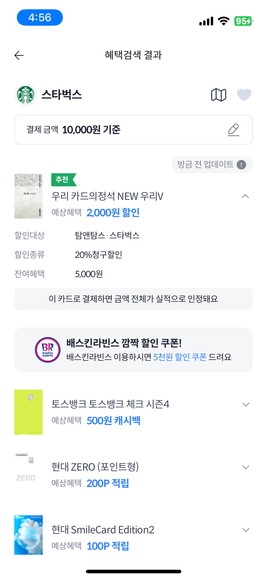내가 혜택 받고 싶은곳을 적으면 내가 가지고 있는 카드중에 최대한 할인 받을 수 있는 카드를 안내 해준다.