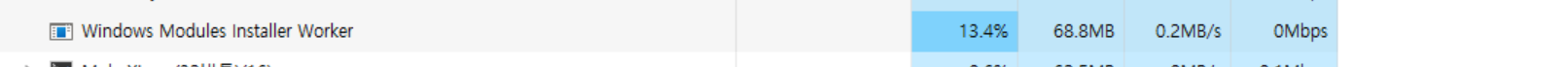 Ctrl + Shift + ESC 눌러서 작업관리자를 열어서 windows modules installer worker 강제 종료 하면된다.