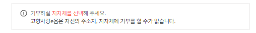 그러면 기부지자체를 선택 할 수 있고 기부 가능여부도 확인 가능하다.