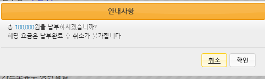 납부시스템이 구동 되고 동의를 하고 확인을 누르자.
