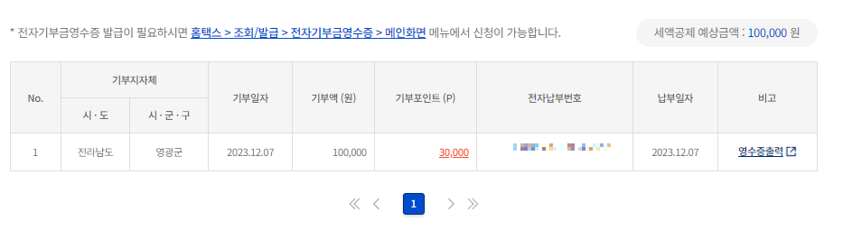 기부금에 30%로가 적립된것을 확인 할 수 있다.