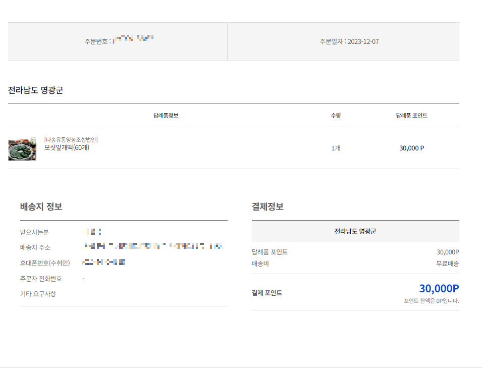 로 선택 했다. 굳이 판매하는 곳으로 안해도 되는것 같은데 그래도 지역경제 살리는거니깐 구매로 기부지자체 선택을 해줬다.