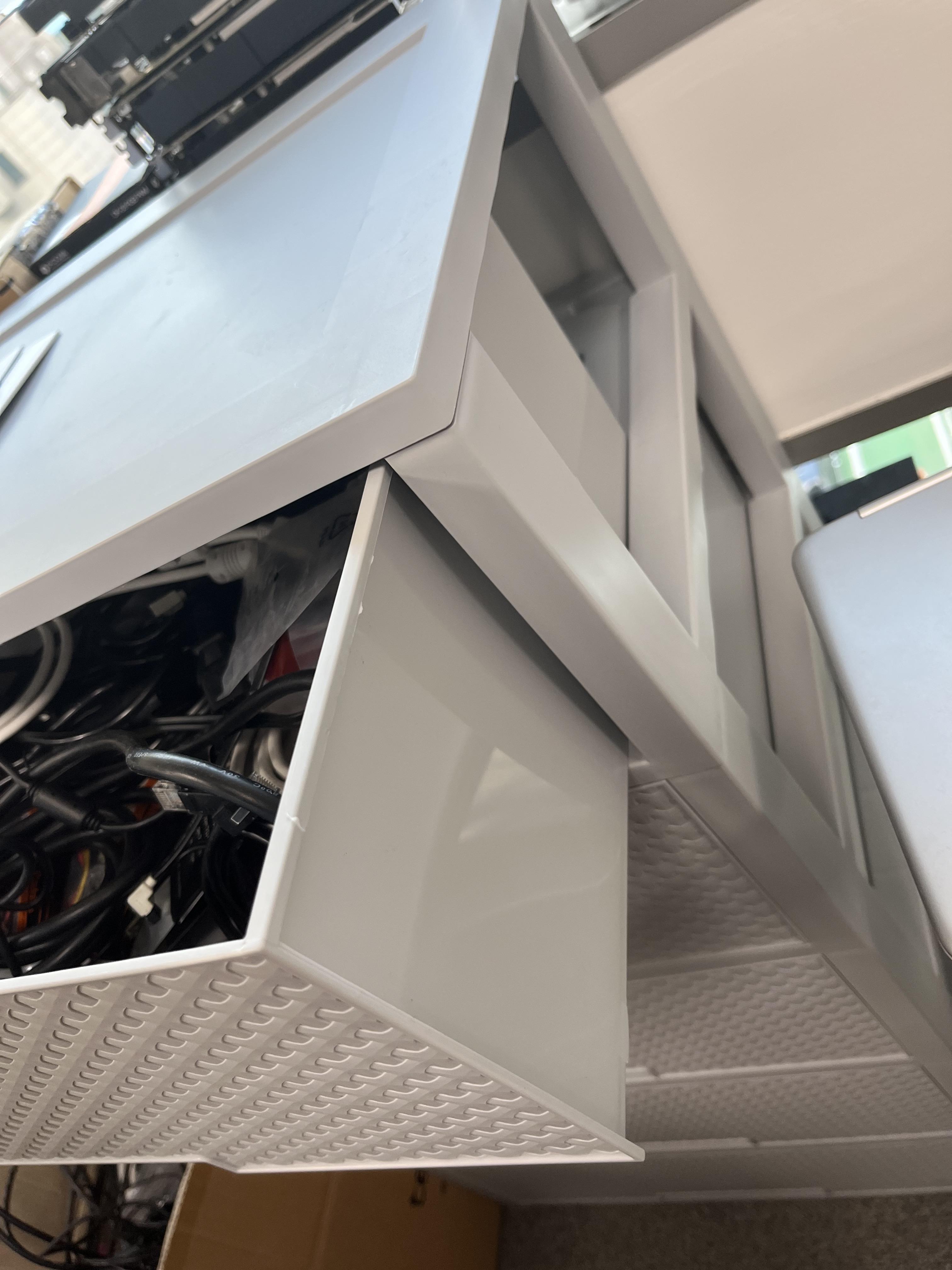 레일 방식이 아니라 무게가 나가는 제품을 올려 놓으면 휘어서 서랍장이 잘 안열린다. 세월이 지나면 더 심해질듯 하다.