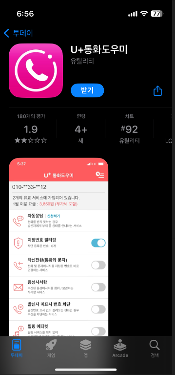 U+통화도우미 어플 이용