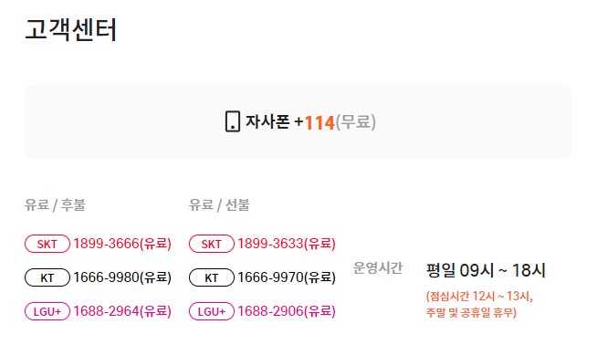 고객센터는 휴대폰에서 114 전화 하면 되고