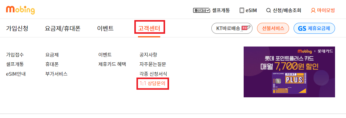 고객센터 혹은 홈페이지에서 신청이 가능하다고 한다.