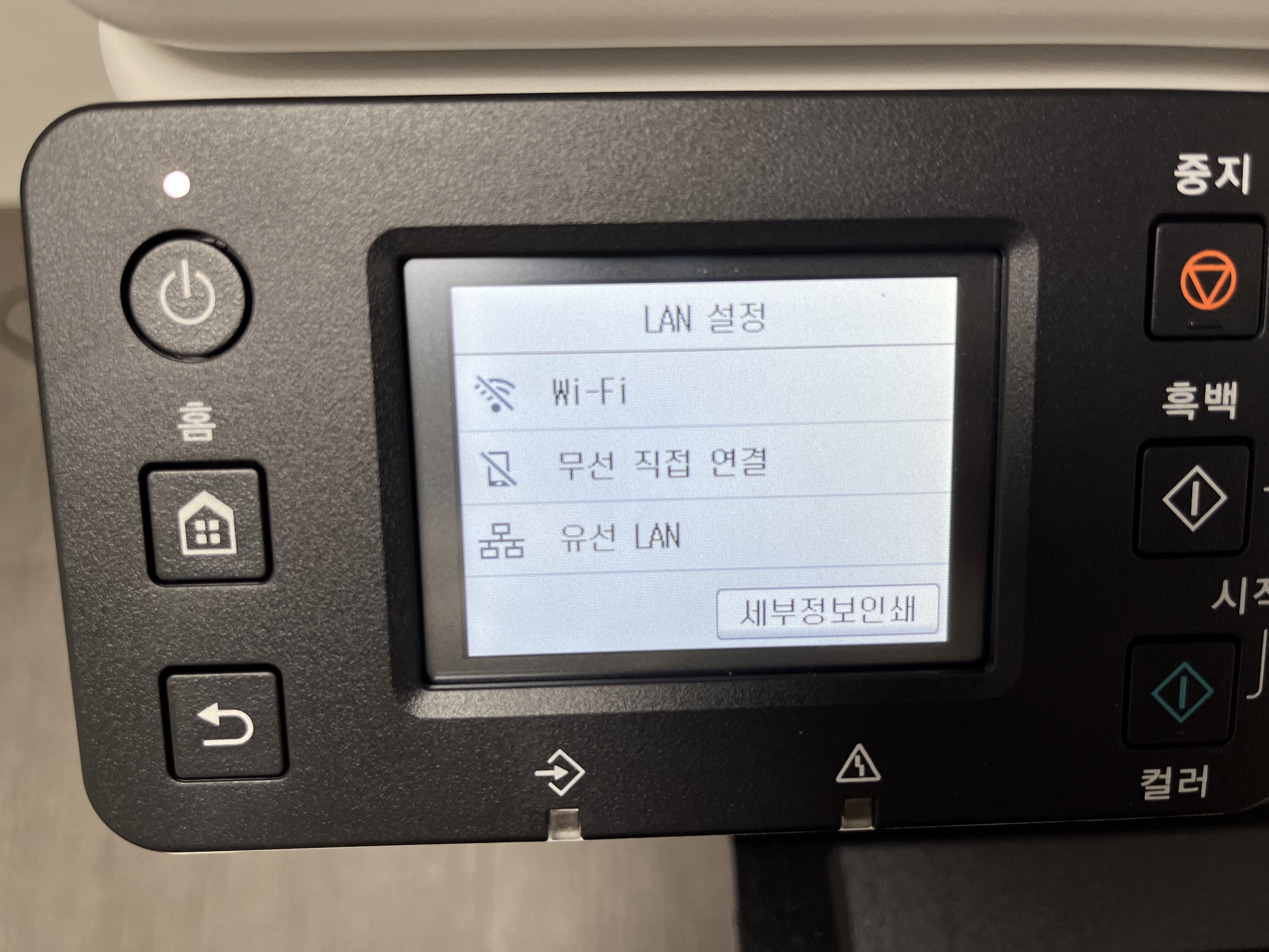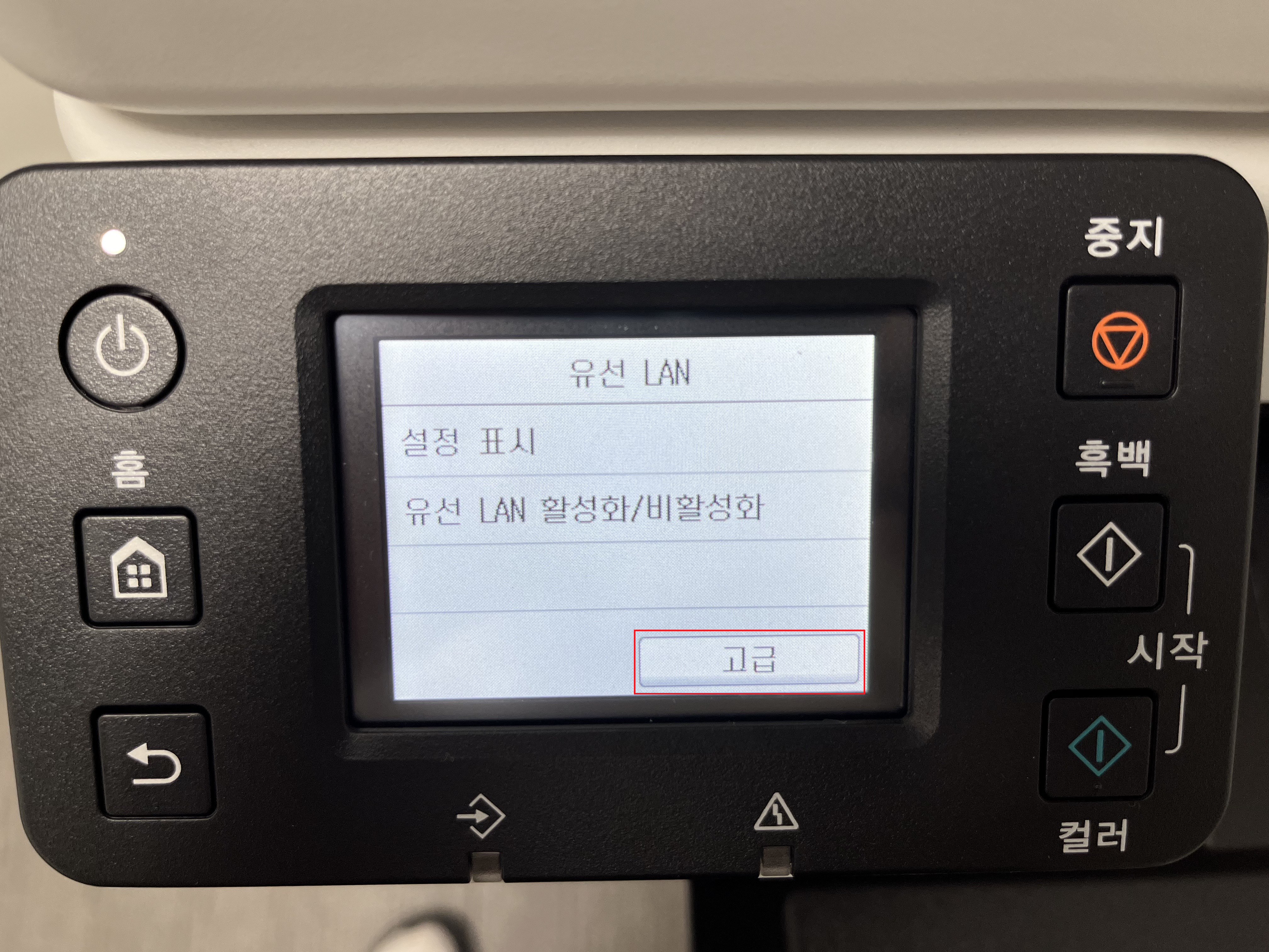 유선 LAN 설정, 만약에 무선 WIFI 를 설정 하고 싶다면 맨 위 메뉴로 가면 된다. 5G는 미지원이다.