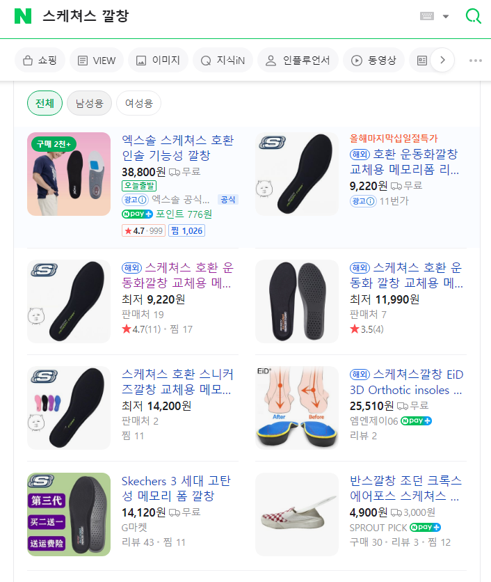 호환은 9천원대이고. 3세대 메모리폼은 1만4천원대.. 이 신발을 코스트코에서 3만원 중반을 샀는데.... 깔창이 너무 비싸다.