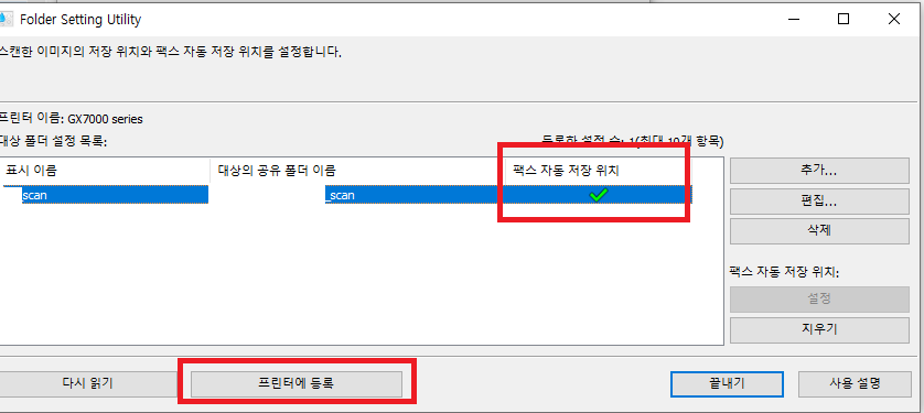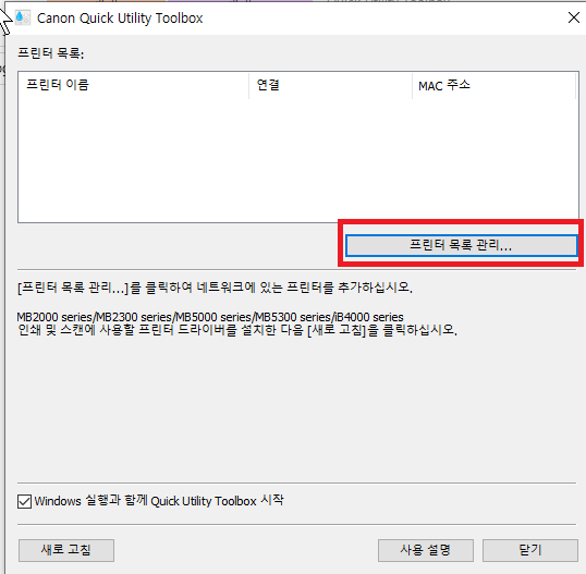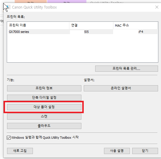 캐논 프린터 스캔 파일로 전송 방법(GX7092) Quick Utility Toolbox
